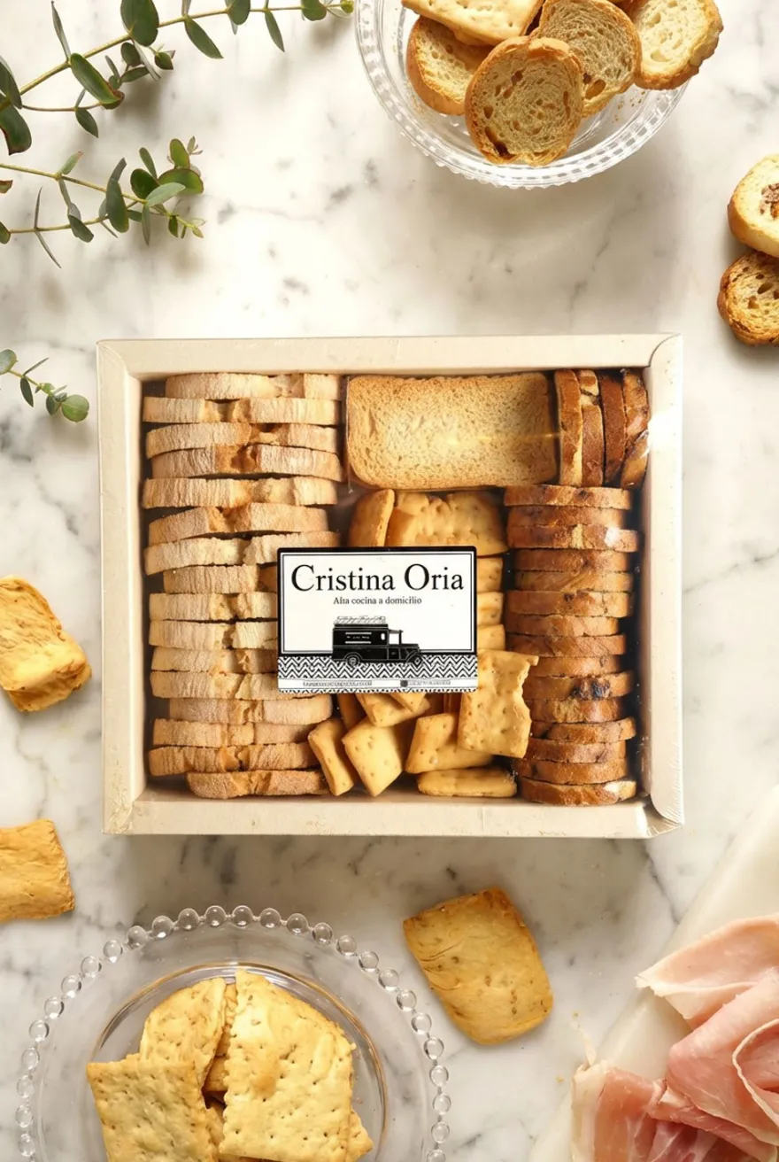 Ingredientes: MINI CHAPATA: harina de trigo, agua, sal, levadura, harina de trigo malteado, gluten, sémola de trigo, masa madre deshidratada, fibra vegetal, emulgente (E472e), espesante (E415), agente de tratamiento de la harina (E300) y enzimas. PAN CROSTINI: harina de trigo, agua, pasas, levadura, azúcar, mantequilla, sal, emulgente (E472e), antioxidante (E300) y enzimas. PAN TOSTA ARTESANA: harina de trigo, agua, levadura, sal, harina de cebada malteada, emulgente (E481) y lecitina de soja