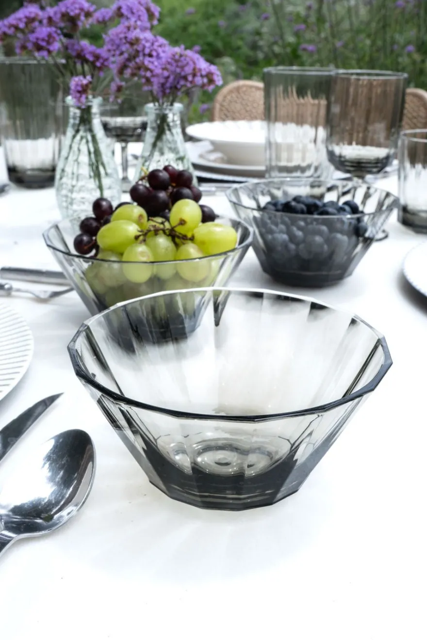 Cuenco de nuestra cristalería acrílica en tono gris que combina el aspecto del vidrio con la durabilidad del acrílico.