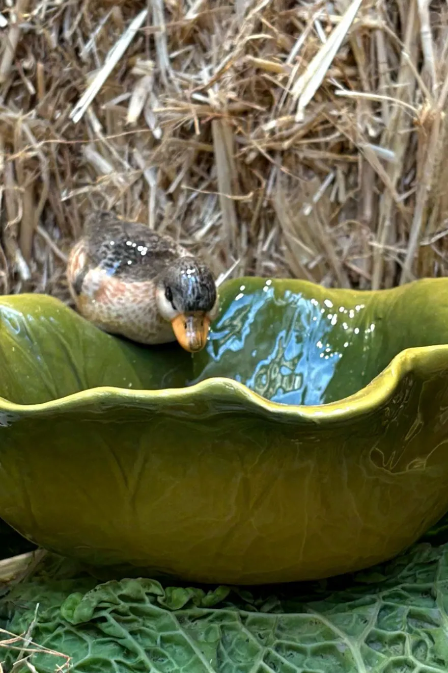 Este cuenco de porcelana, elaborado artesanalmente, presenta un delicado diseño de hoja verde y una figura de un pato que le da un toque especial y natural. Perfecto tanto para usar como vajilla en tus comidas o para decorar tu casa con un detalle único.