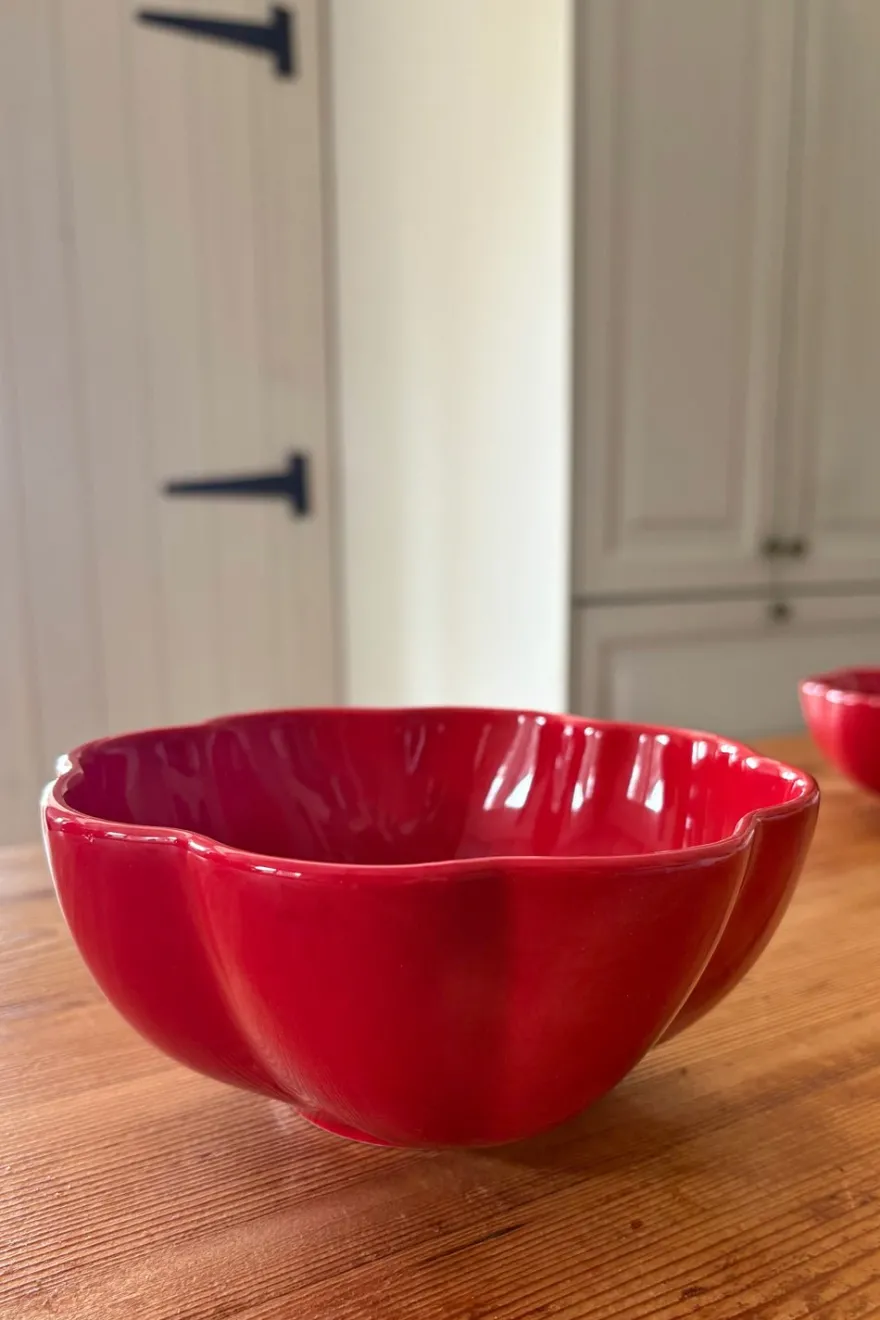 Cuenco grande de loza fina esmaltada con diseño de pimiento,100% artesanal, ideal para complementar y dar un toque fresco, original y diferente a tus mesas.