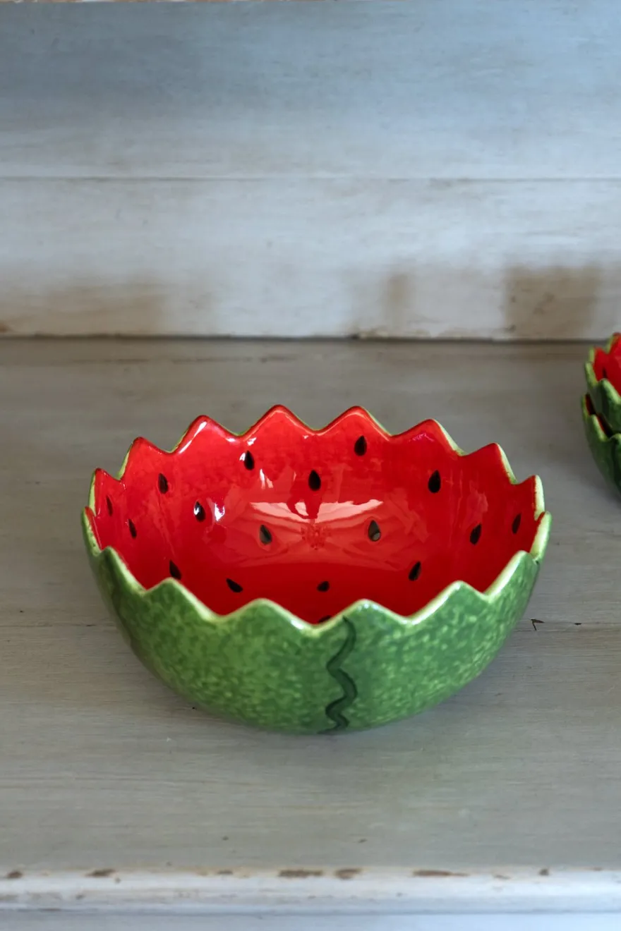 Cuenco grande o ensaladera de gres con diseño de sandía, ideal para dar un toque fresco, original y diferente a tus mesas durante cualquier época del año.
