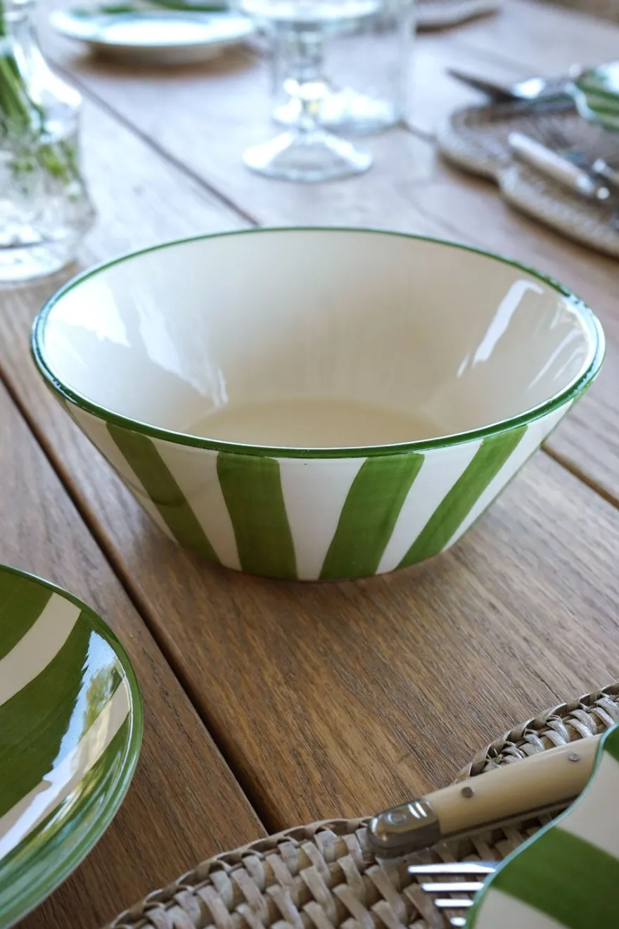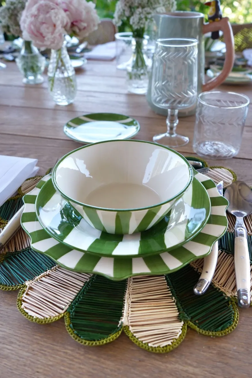 Dale un toque de frescura y elegancia a tu mesa con esta vajilla de cerámica, diseñada con rayas blancas y verdes. Su estilo alegre y versátil la convierte en la elección perfecta para cualquier ocasión, desde comidas cotidianas hasta celebraciones especiales. Fabricada con materiales de alta calidad, esta vajilla combina durabilidad con un acabado artesanal que resalta en cualquier entorno.