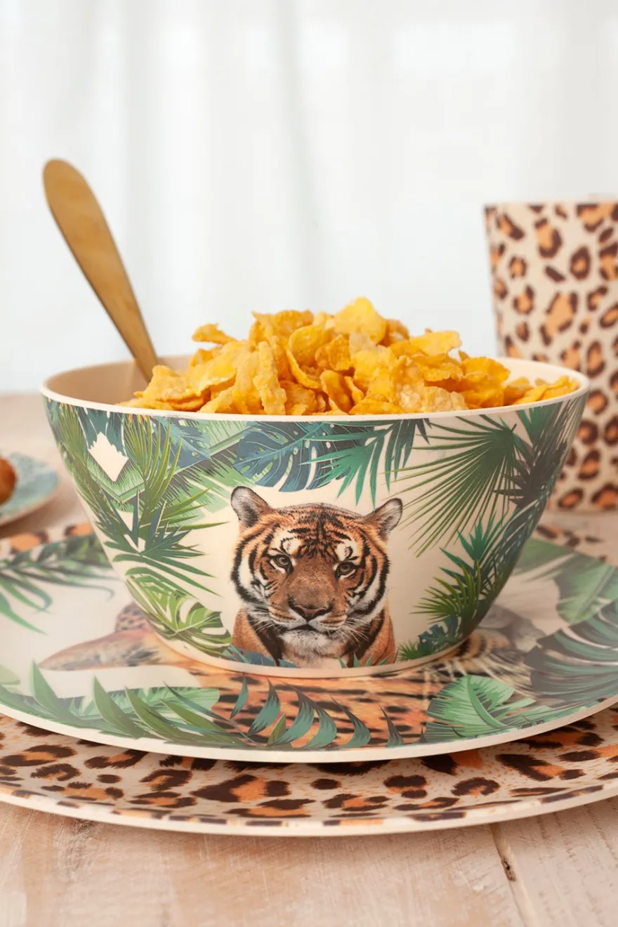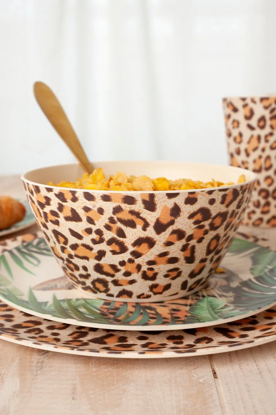 Cuenco de bambú disponible en tres diferentes diseños de selva: animal print, leopardo y tigre.