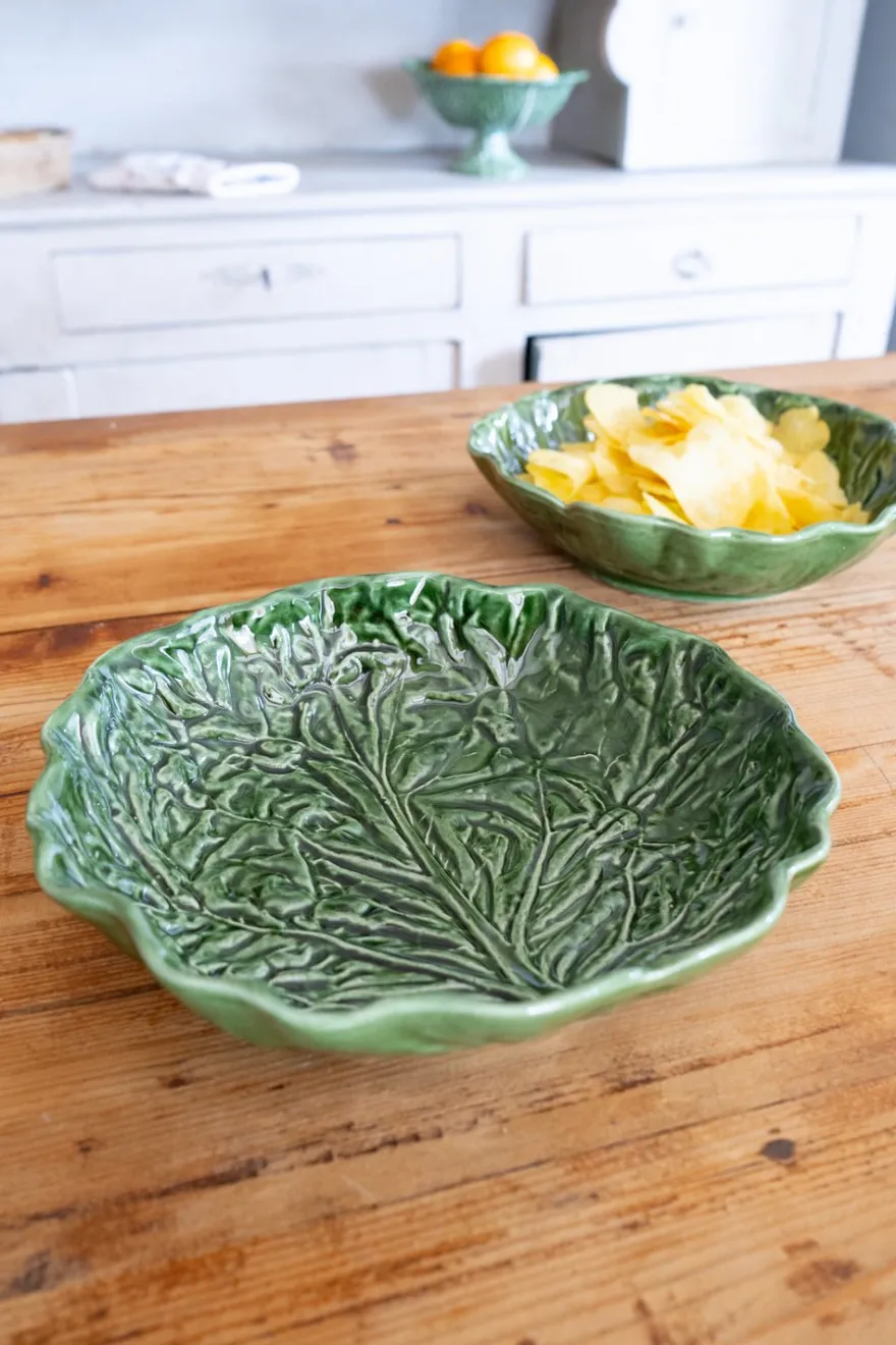 Ensaladera oval mediana de cerámica con diseño de hoja de col, ideal para dar un toque fresco, original y diferente a tus mesas durante cualquier época del año.