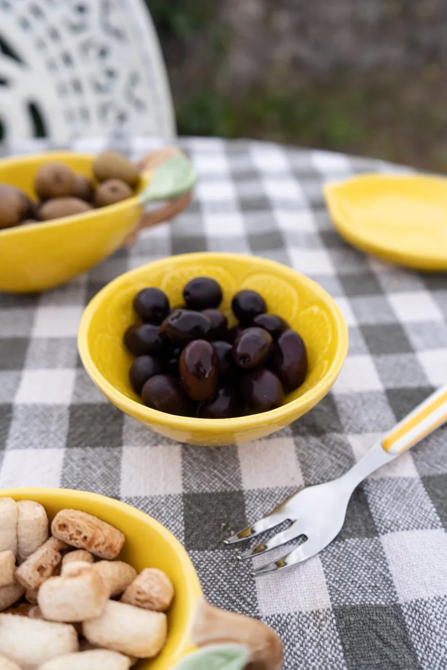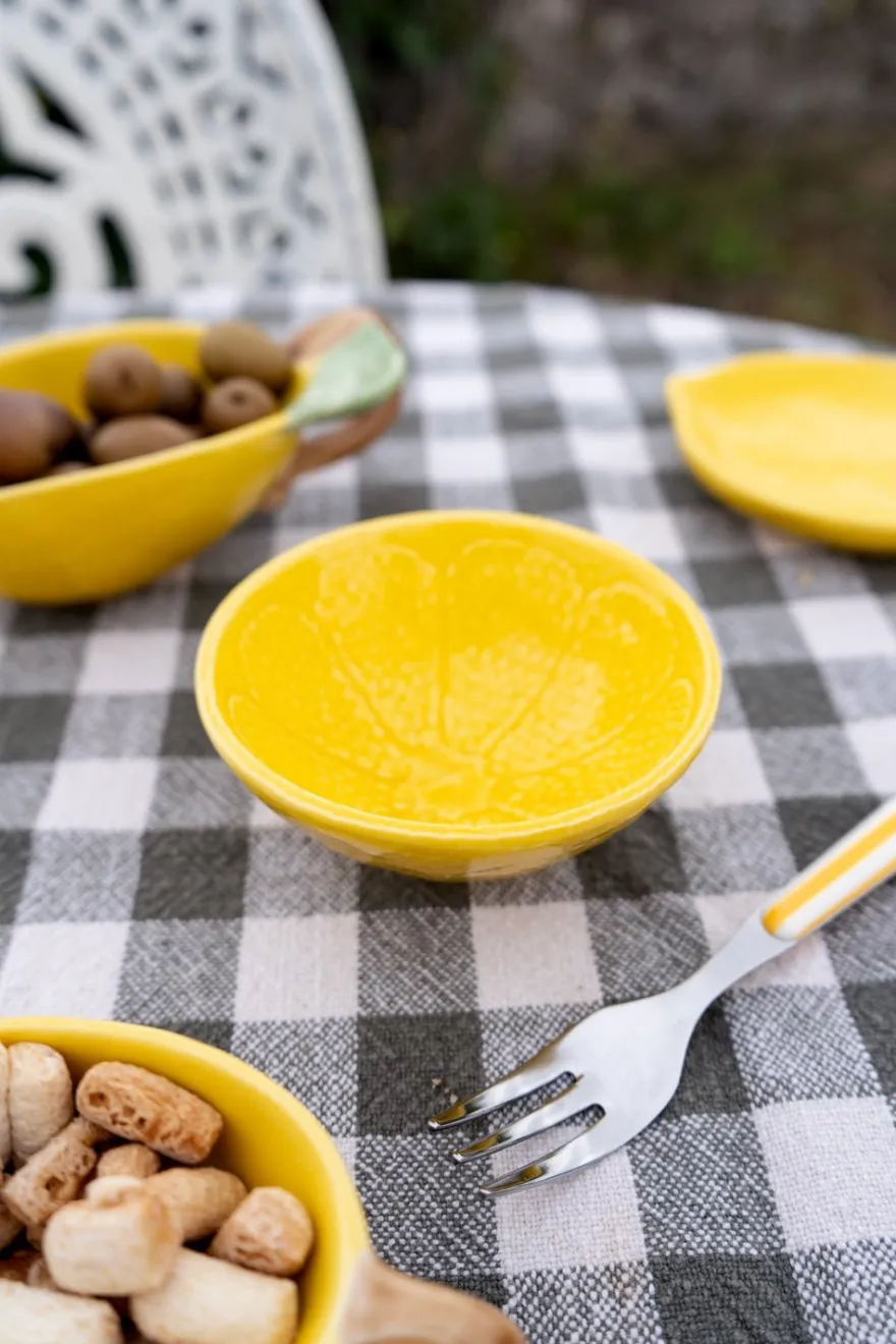 Mini cuenco de cerámica con diseño de limón pintado a mano. Dale color, frescor y un toque artesanal a la decoración de tu mesa.