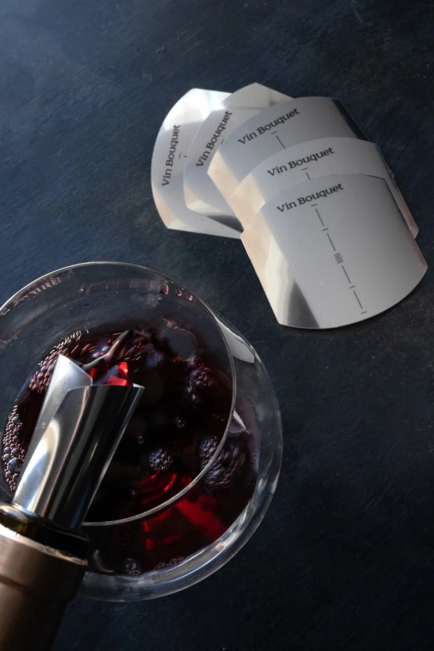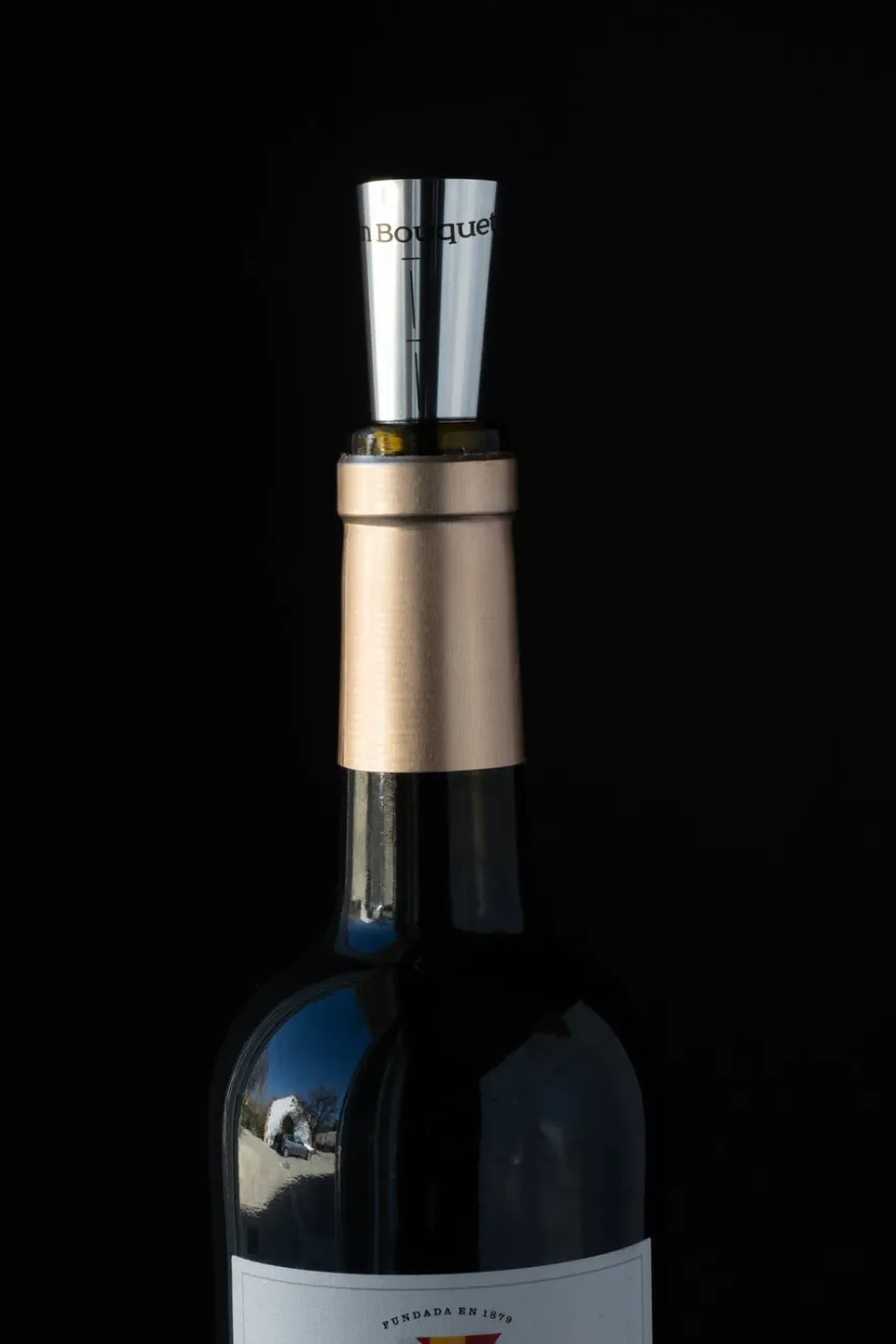 Set de cinco boquillas antigoteo, muy fáciles de usar, simplemente enrollando la lámina e introducirla en el cuello de la botella. Así evitarás posibles manchas al verter el vino.