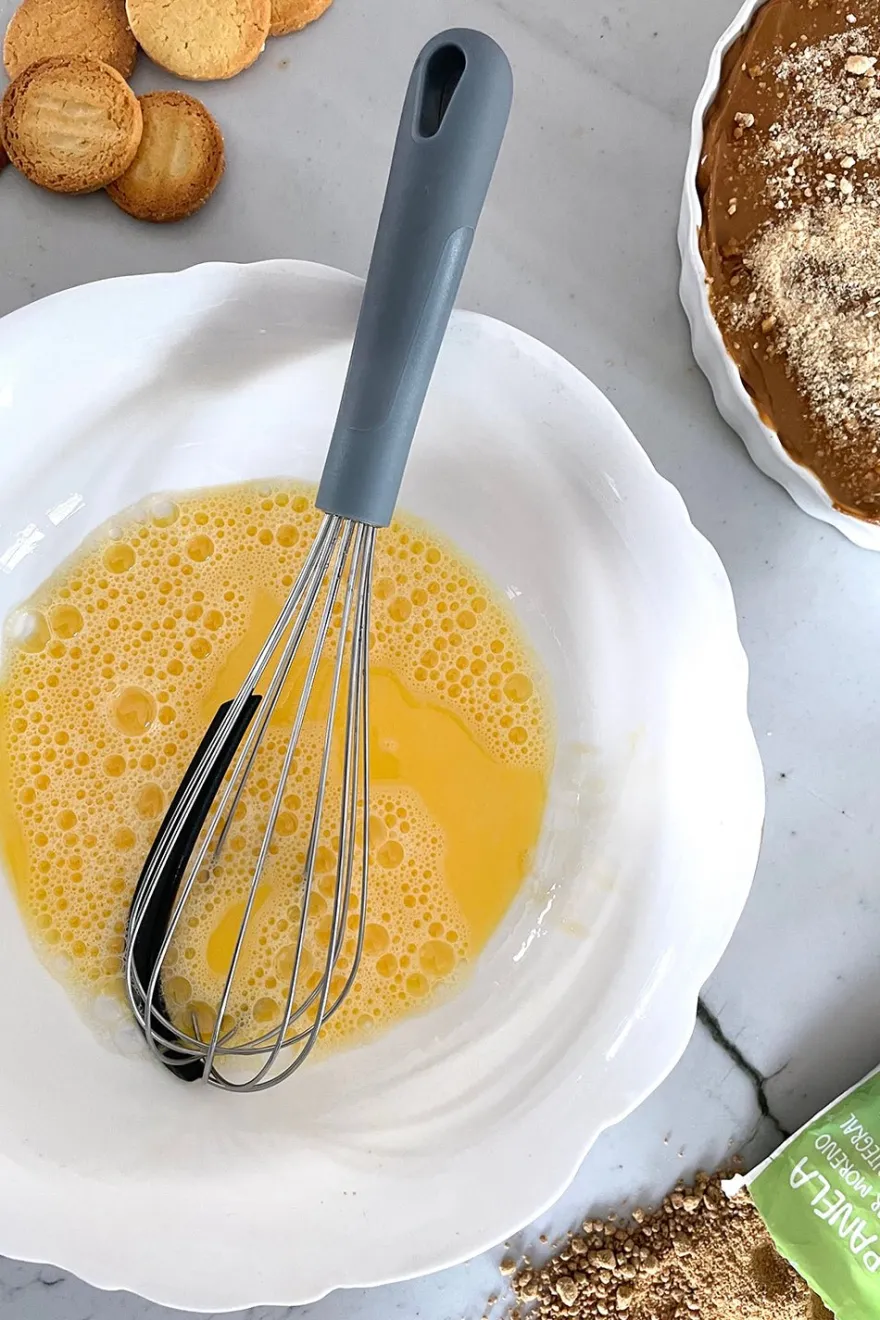 Combinación de batidor con espátula, súper práctico, ya que una vez se termina de batir, se limpia y rebaña con el mismo utensilio, ya que en una de sus varillas hay una banda de silicona que se usa a modo de espátula.