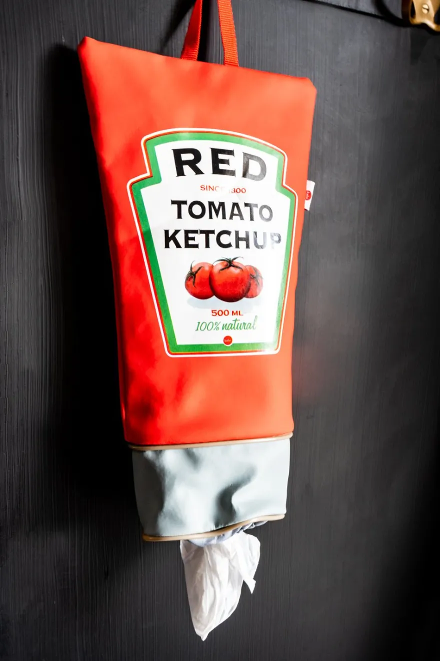 Original dispensador de bolsas de plástico con diseño de Ketchup.