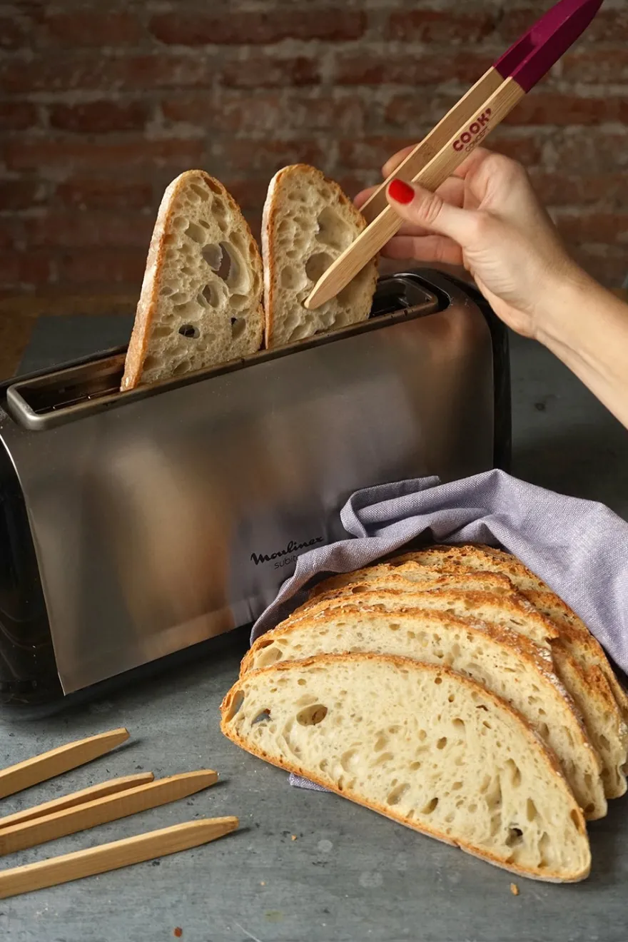 Pinza para retirar el pan de la tostadora, también lo puedes utilizar para dar la vuelta a la comida en la sartén, incluso pasarla a un plato.
