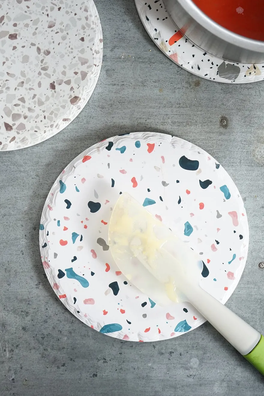 Salvamanteles de poreclana efecto terrazo, disponible en 4 diseños diferentes.