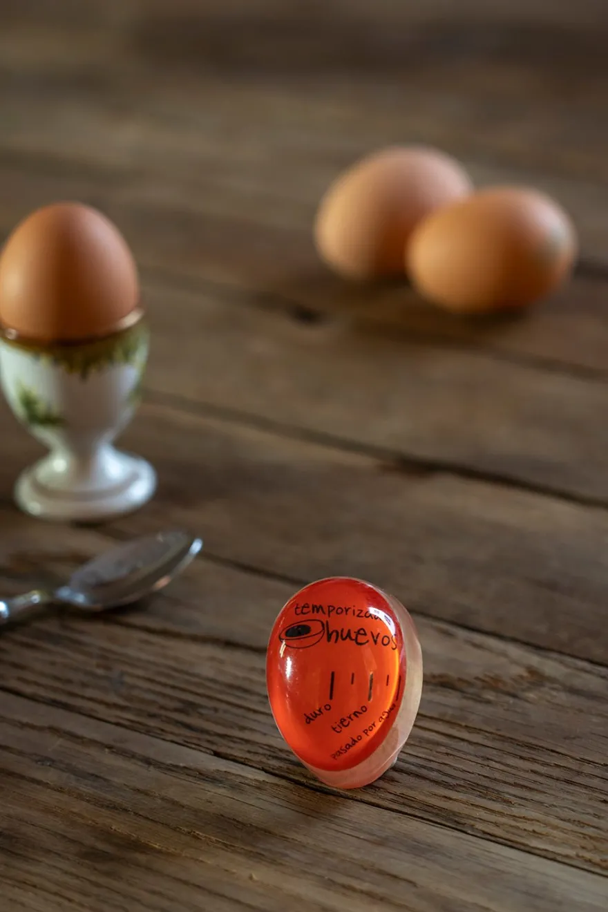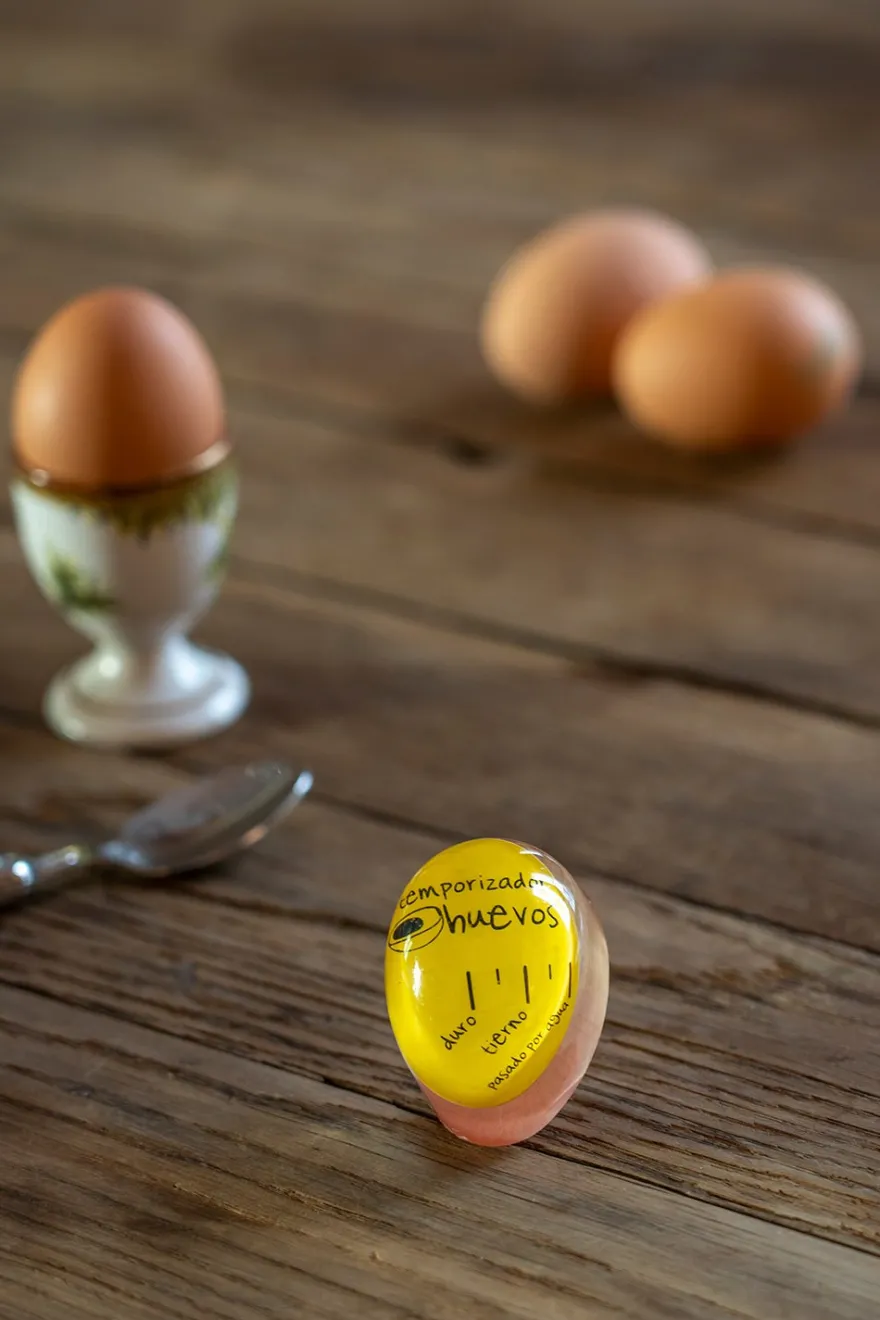 Temporizador de huevos, disponible el tres colores diferentes: amarillo, azul y rojo.
