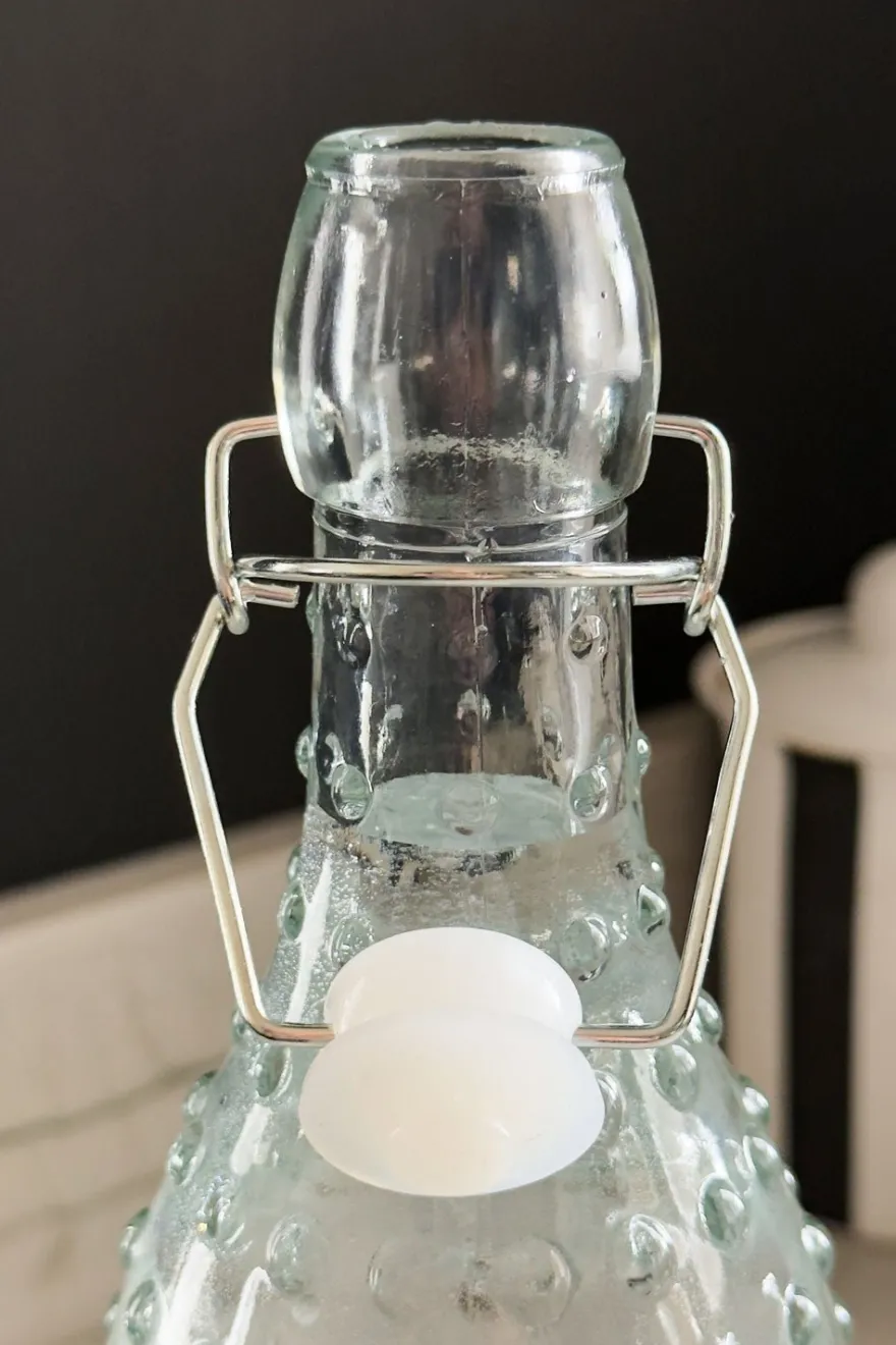 Botella de un litro de capacidad fabricada en vidrio resistente y reutilizable, ideal para agua, zumos, infusiones o bebidas caseras. Incorpora tapón con cierre hermético tipo clip, que garantiza un sellado seguro y conserva mejor el contenido.