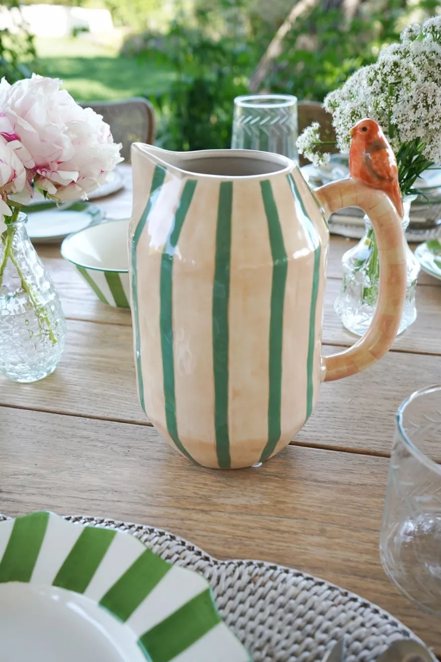 Cristina Oria Jarras Y Botellas^Jarra Rayas Verdes Y Detalle Pájaro