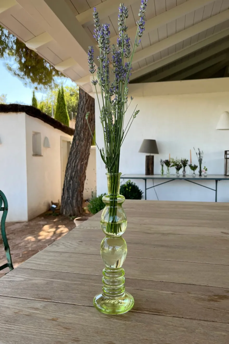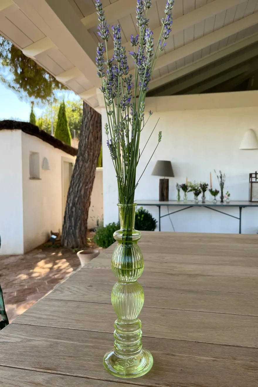 Florero de cristal verde claro, ideal para complementar y dar un toque fresco, original y diferente a cualquier rincón de tu casa. Puedes llenarlo con flores, usarlo como portavelas o simplemente para decorar sin nada en su interior.