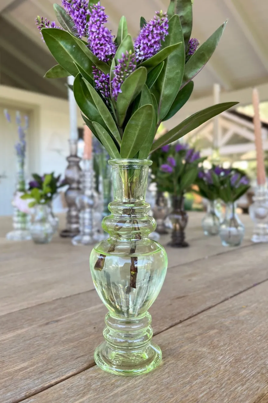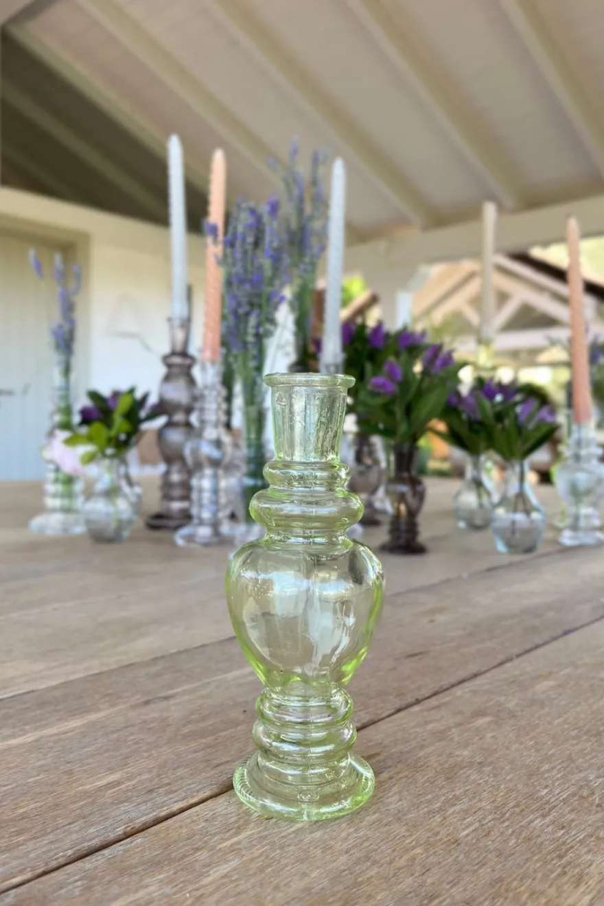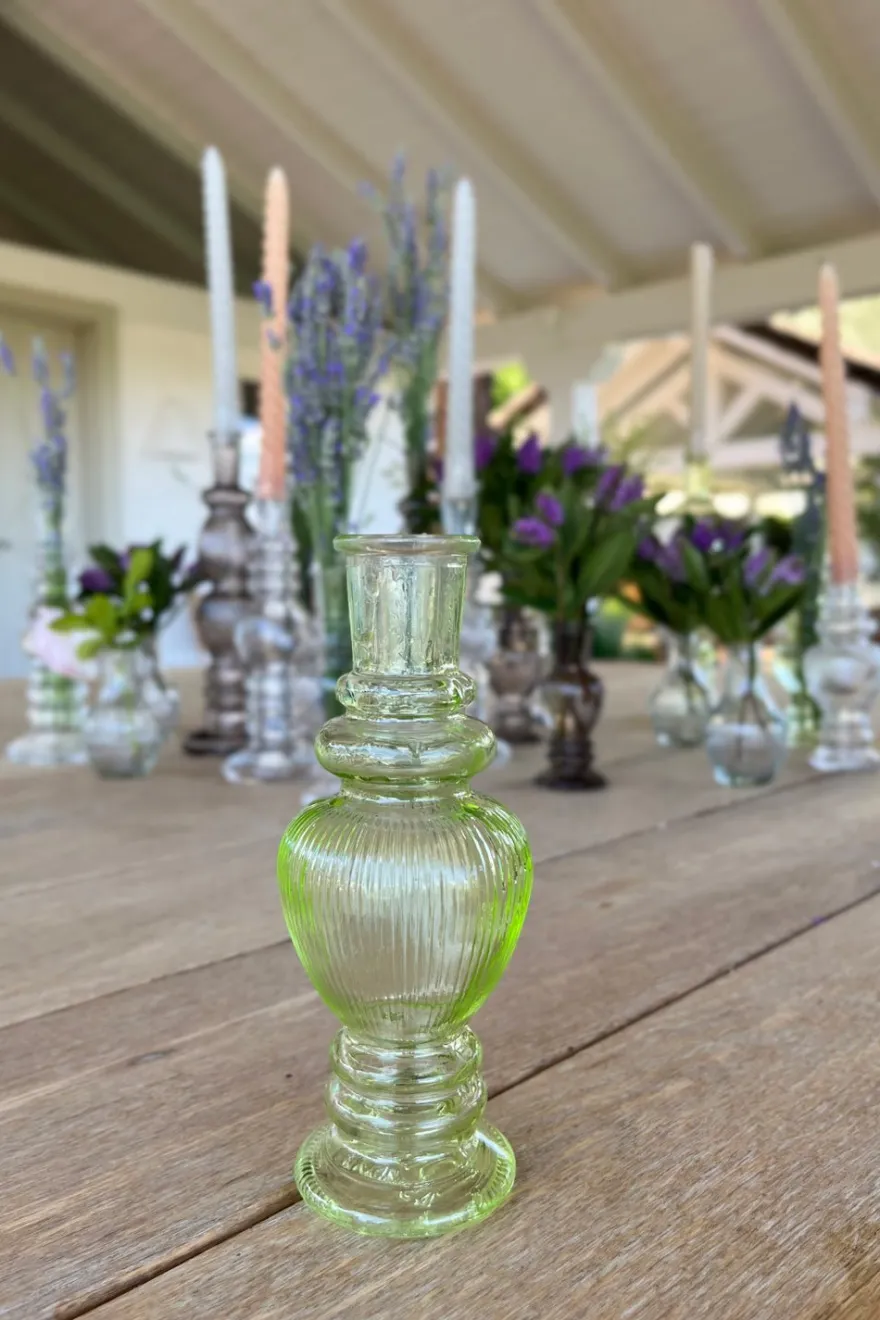Florero de cristal verde claro, ideal para complementar y dar un toque fresco, original y diferente a cualquier rincón de tu casa. Puedes llenarlo con flores, usarlo como portavelas o simplemente para decorar sin nada en su interior.