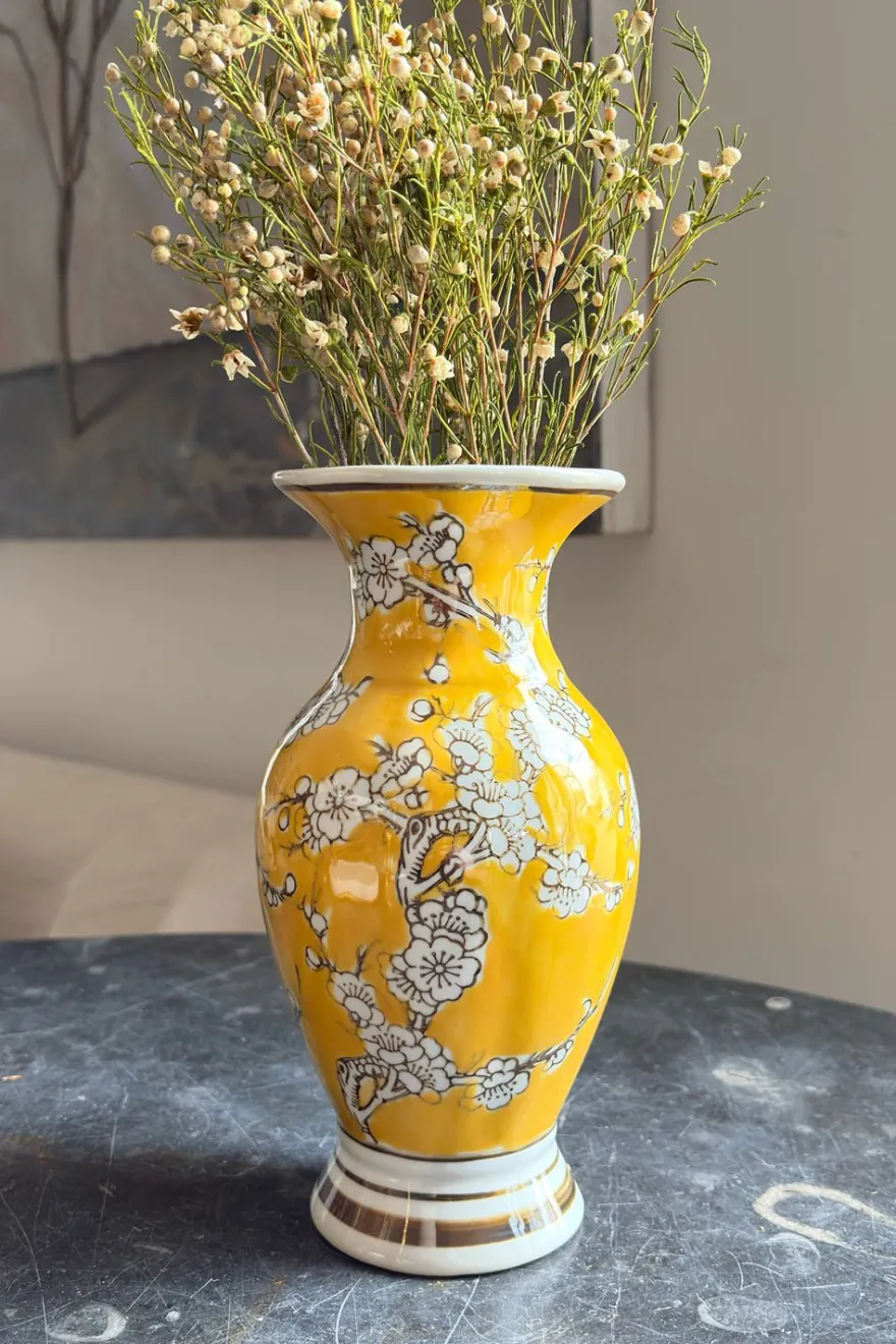 Esta colección de floreros de porcelana amarillos o verdes está inspirada en la delicada belleza de la naturaleza japonesa. Con un diseño refinado de flores, cada pieza captura la imagen de los jardines orientales.