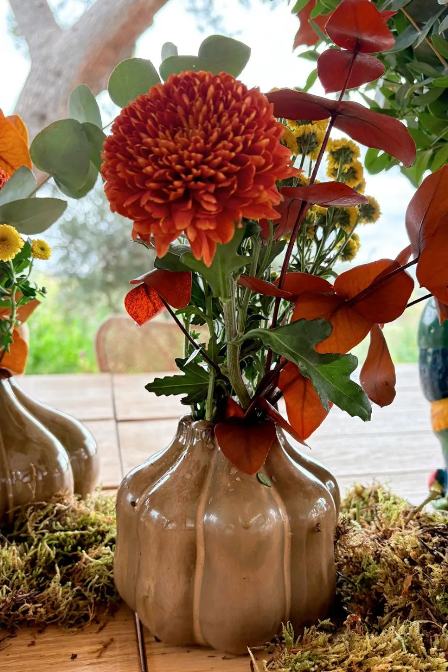 Ideal para arreglos florales otoñales o rústicos, este jarrón combina a la perfección con materiales naturales como hojas secas, musgo o flores de temporada.