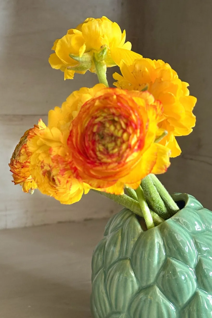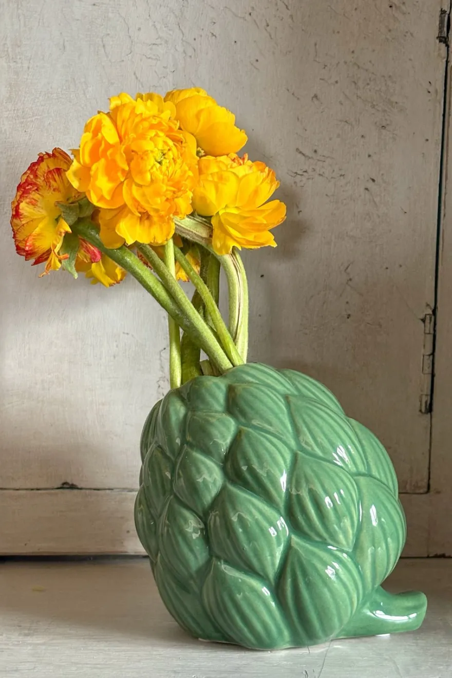 Jarrón de loza fina esmaltado con diseño de alcachofa,100% artesanal, ideal para complementar y dar un toque fresco, original y diferente a cualquier rincón de casa.