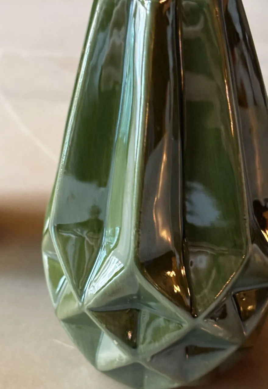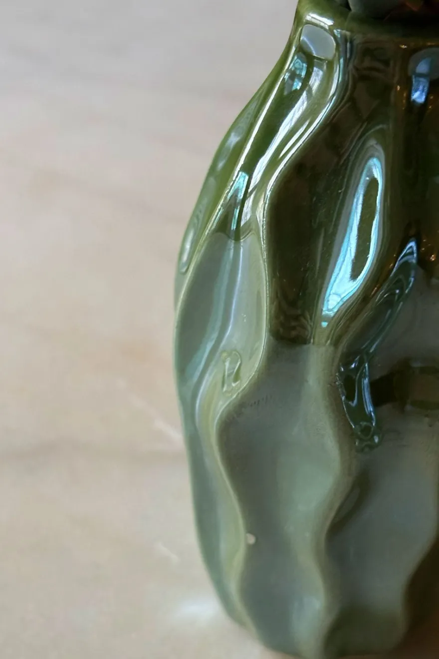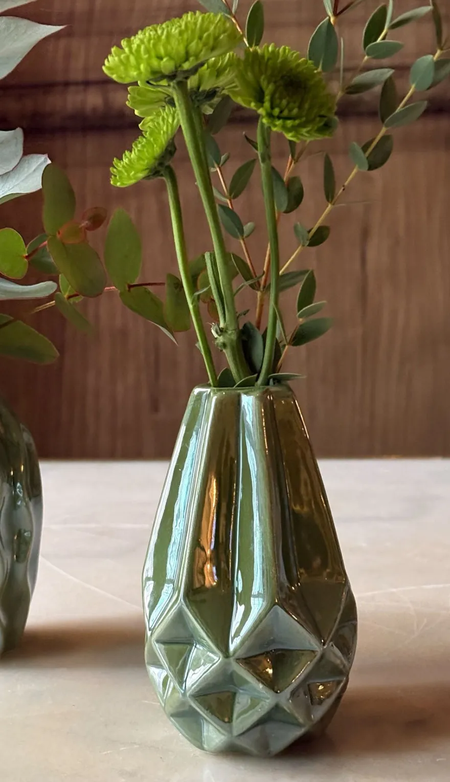 Este set de dos floreros de loza esmaltada combina diseño y personalidad en un dúo perfecto. Con formas distintas y complementarias, y un acabado en tono verde, cada pieza aporta carácter y frescura a cualquier rincón. Ideales para exhibir juntos o por separado, con flores frescas o secas, decorando mesas, repisas o centros de mesa.