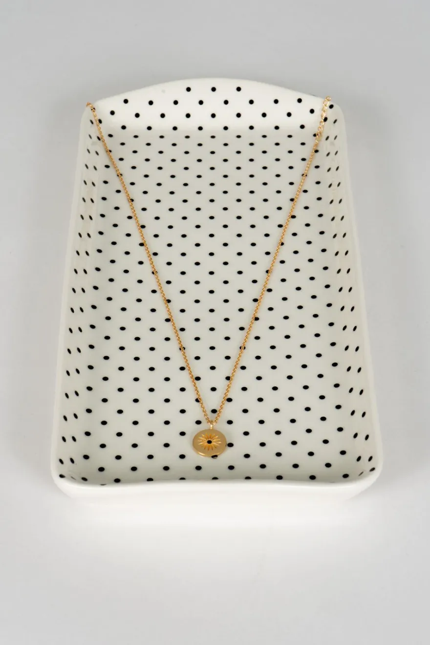 Collar de latón bañado en oro para lograr un acabado brillante y duradero con colgante redondo y detalle de circonita negra, ideal tanto para el día a día como para cualquier ocasión especial.