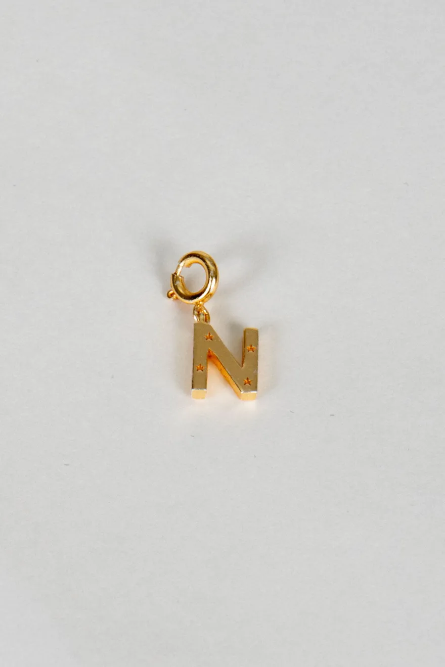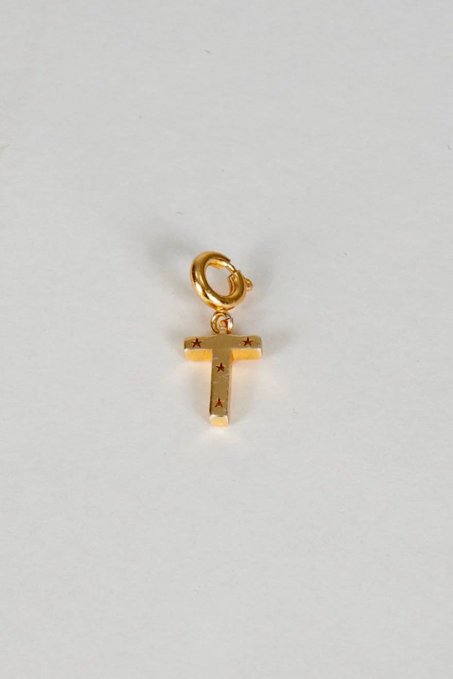 Iniciales de latón bañadas en oro para lograr un acabado brillante y duradero con delicados detalles de estrellas que aportan un brillo sutil y encantador. Cada letra incluye un enganche que permite colgarla fácilmente en distintas cadenas o pulseras, adaptándose a diferentes estilos.