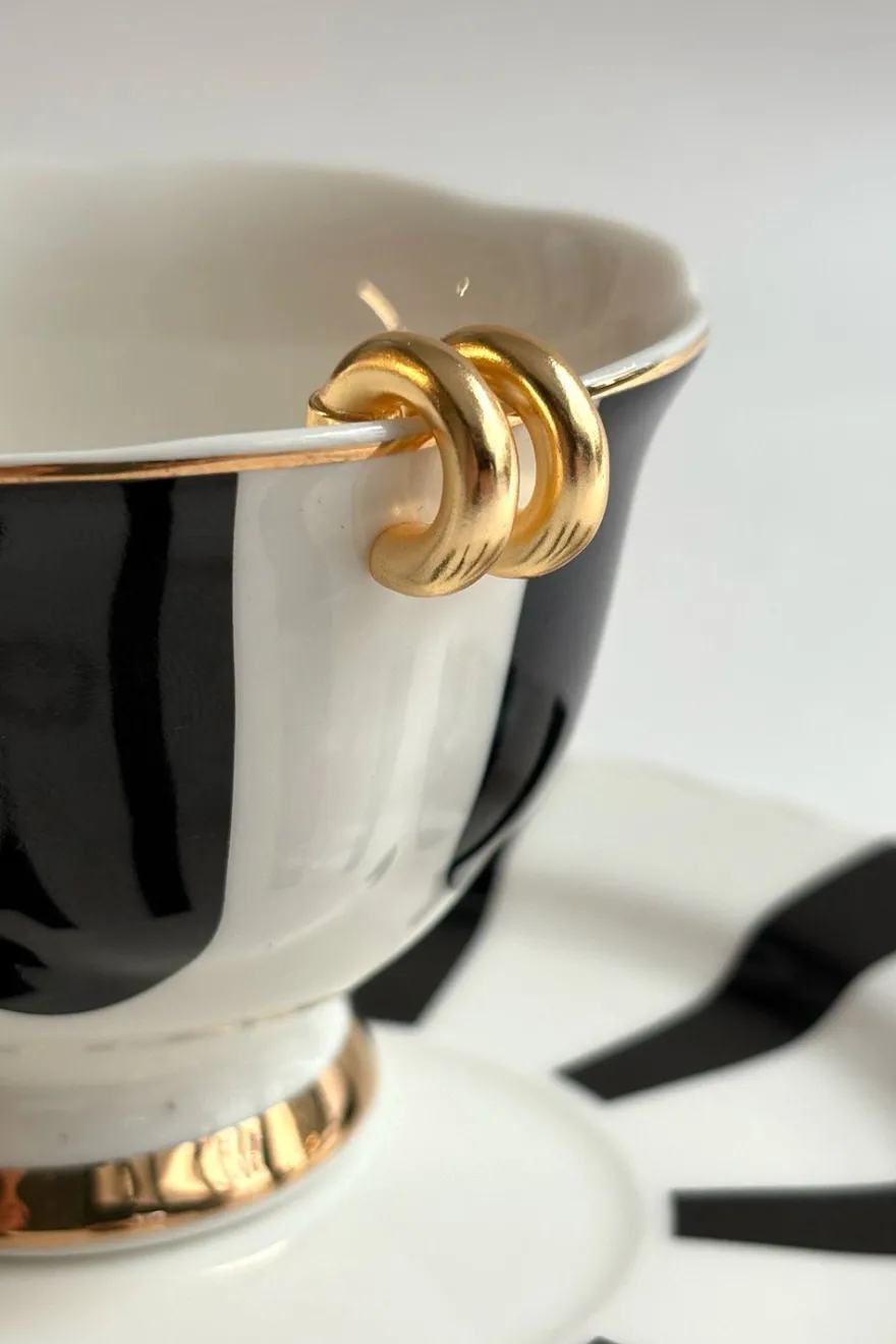 Pendientes de latón bañados en oro para lograr un acabado brillante y duradero con diseño de aros pequeños, ideales tanto para el día a día, como para cualquier ocasión especial.
