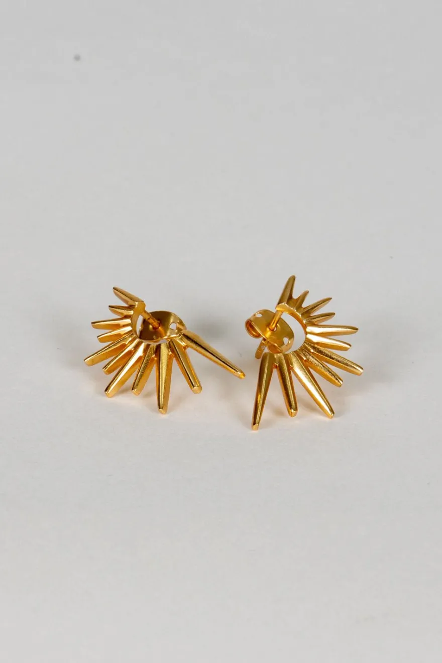 Pendientes de latón bañados en oro para lograr un acabado brillante y duradero con diseño de medios soles, que aportan un toque de brillo y calidez a cualquier look. Ideales tanto para el día a día como para cualquier ocasión especial.