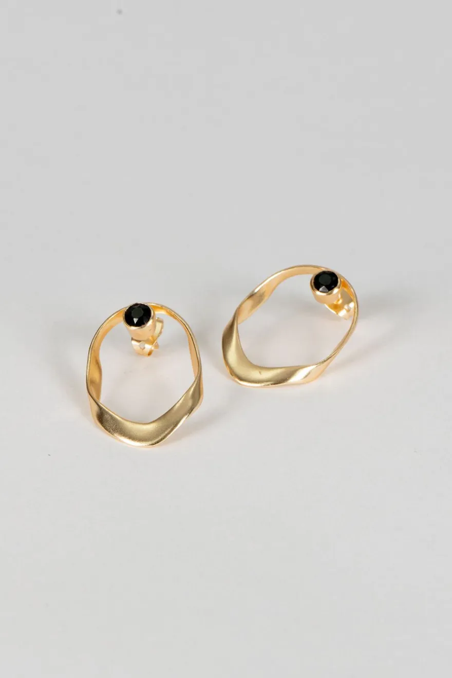 Pendientes de latón bañados en oro para lograr un acabado brillante y duradero con diseño ovalado y detalle de ónix negra, que aportan un toque de brillo y elegancia a cualquier look. Ideales tanto para el día a día como para cualquier ocasión especial.
