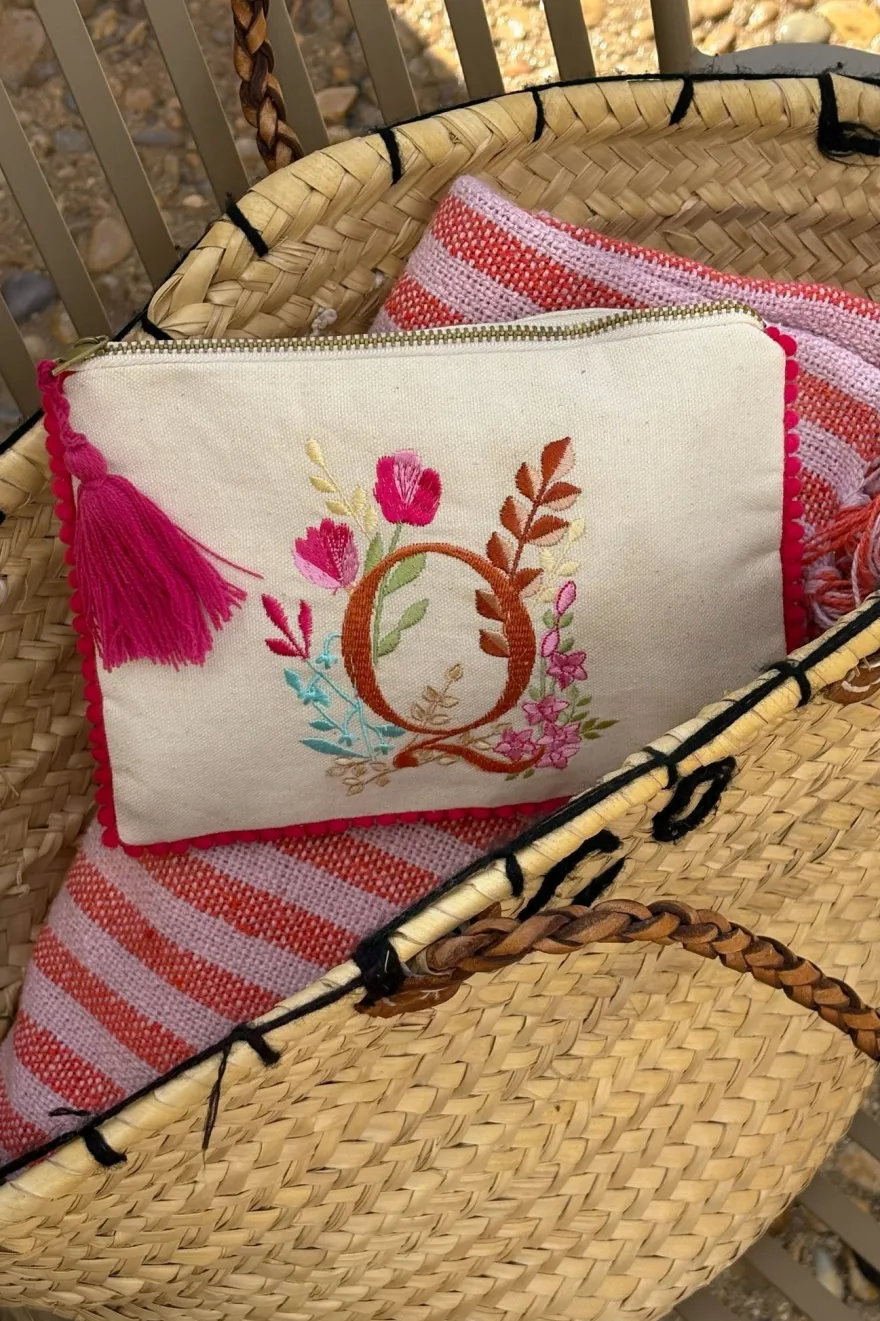 Este neceser con la inicial «Q» y delicadas flores de distintos colores bordadas, añade un toque personal y distintivo, combinando funcionalidad y estilo.