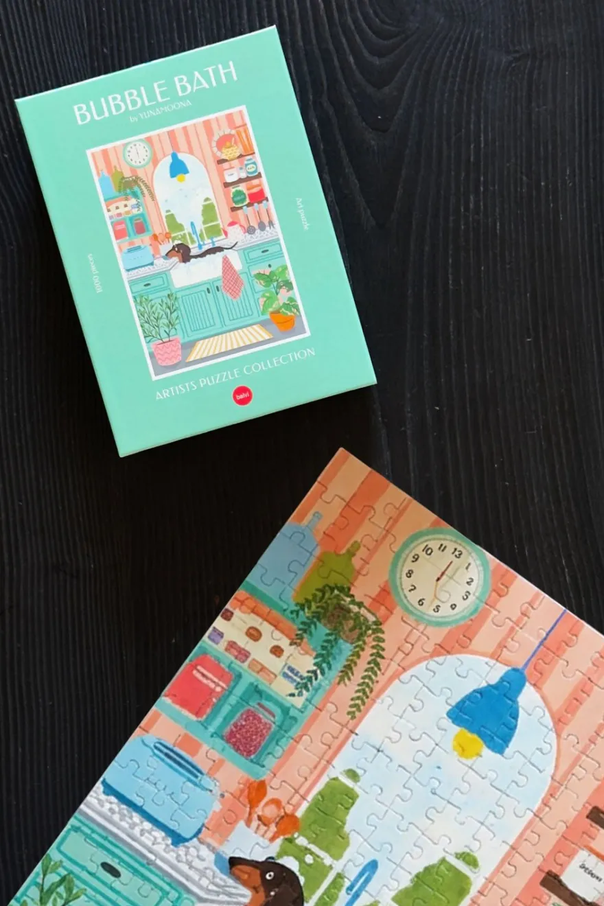 Rompecabezas de 1000 piezas que captura a un perro chapoteando en el fregadero. El regalo perfecto para desconcertar y enmarcar una vez completado.