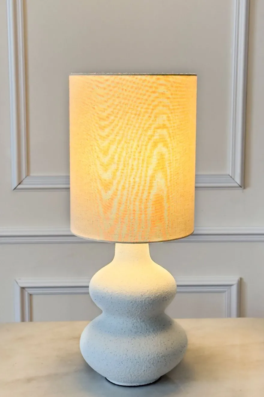 Lámpara de mesa decorativa con un elegante cuerpo de cerámica en tono crema y pantalla de lino, diseñada para aportar calidez y equilibrio a cualquier rincón. Su silueta suave y orgánica la convierte en una pieza decorativa ideal para salones, dormitorios o zonas de lectura.