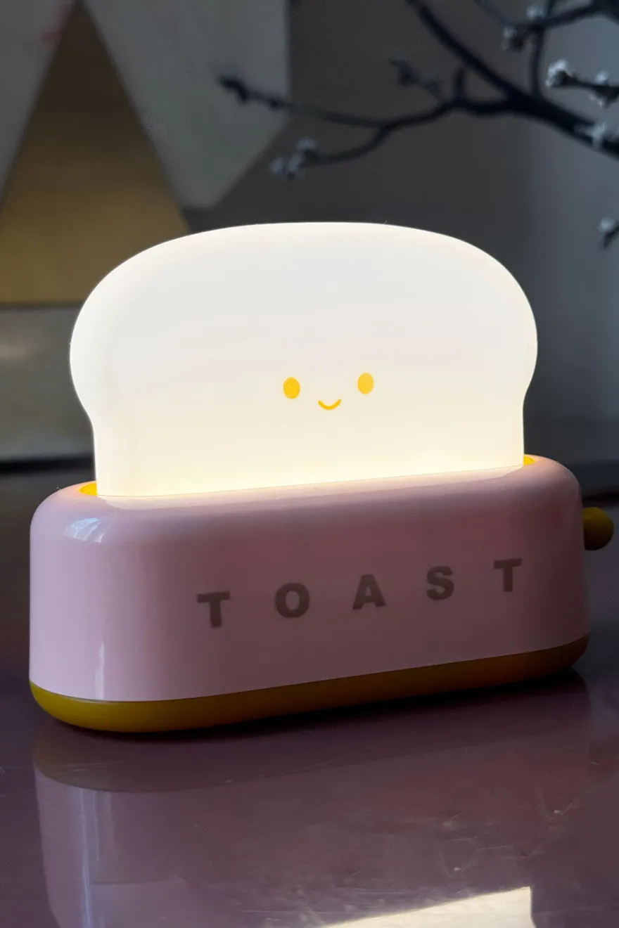 Lámpara nocturna con forma de tostadora vintage estilo kawaii y tostada luminosa. Ideal para mesas de noche y escritorios. Su luz suave es perfecta para ayudar a los más pequeños a dormir sin molestar.