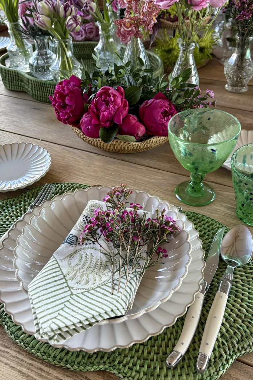 Individual ovalado con diseño irregular de ratán verde, ideal para añadir un toque natural y alegre a tu mesa, además de ser una pieza versátil que combina belleza y funcionalidad. Esta colección combina la belleza del material natural con la funcionalidad y el diseño contemporáneo.