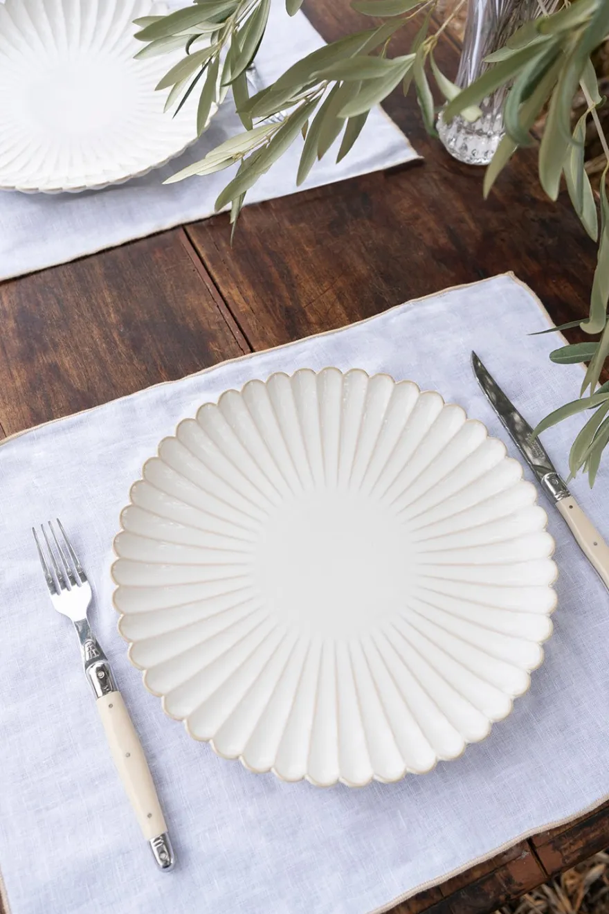 Individual de lino hecho a mano, en color blanco con borde en color beige, que le dará un aspecto fresco, elegante y lujoso a tu mesa. Se puede usar a diario o para una gran celebración.