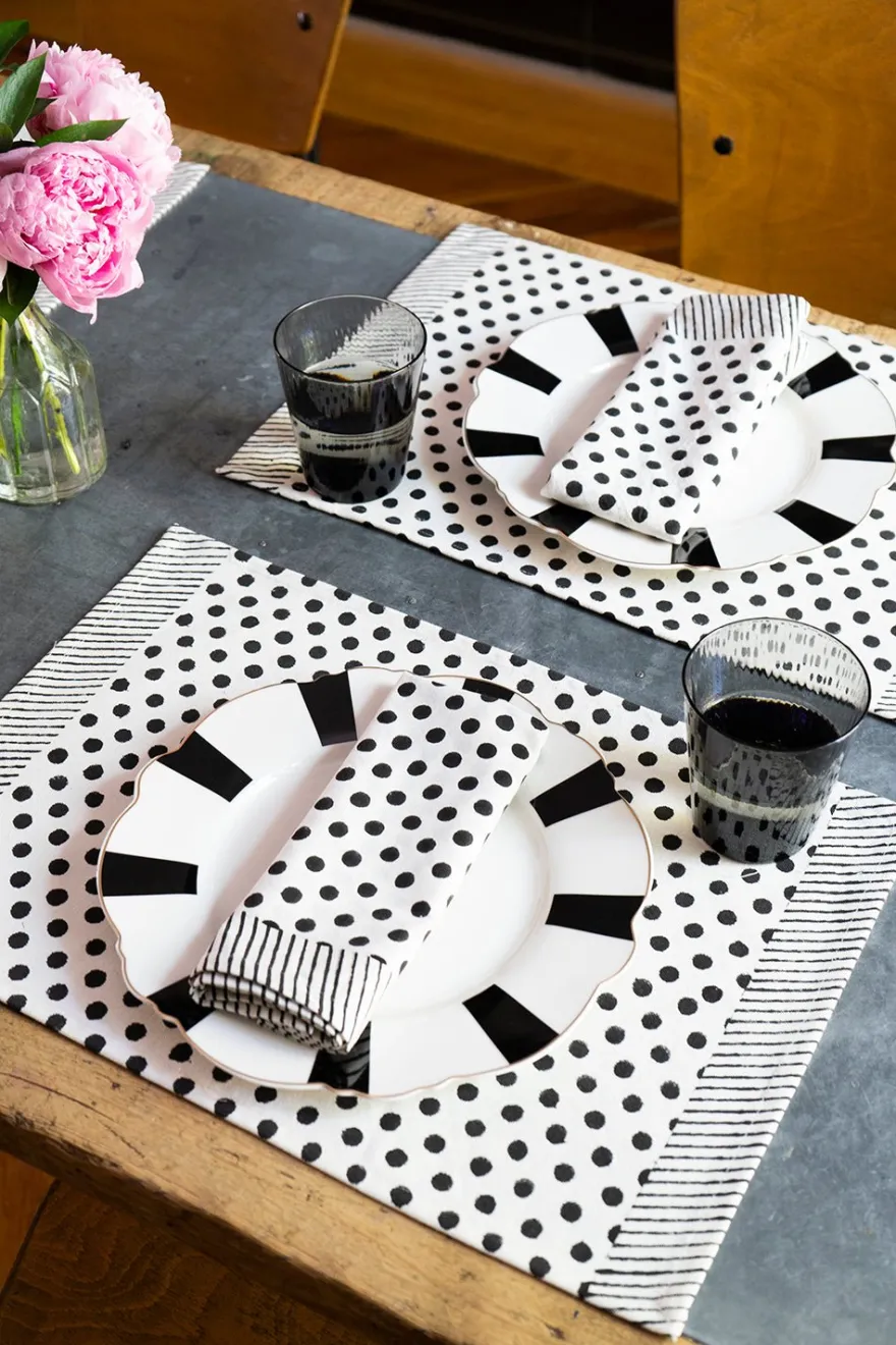 Mantel individual 100% algodón con diseño Ganesh, con los colores blanco y negro CO, pintado a mano en la India.