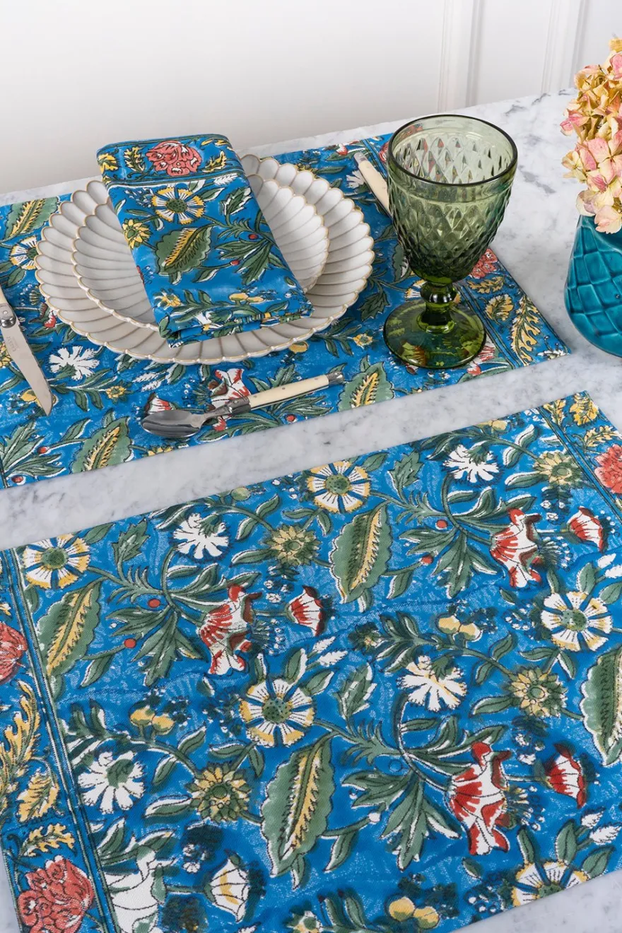 Mantel individual 100% algodón con diseño Warsha, cuyo significado es “Lluvia”, pintado a mano en la India.