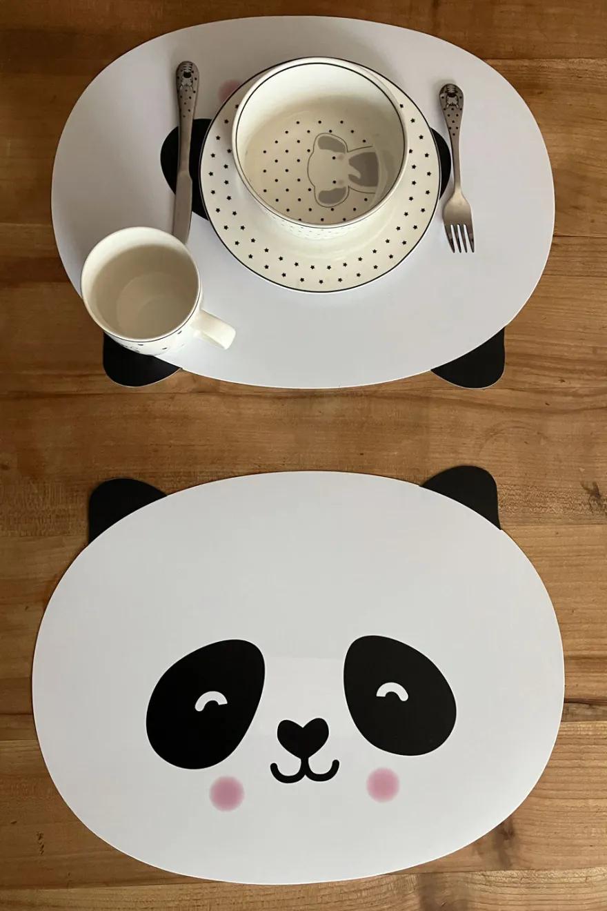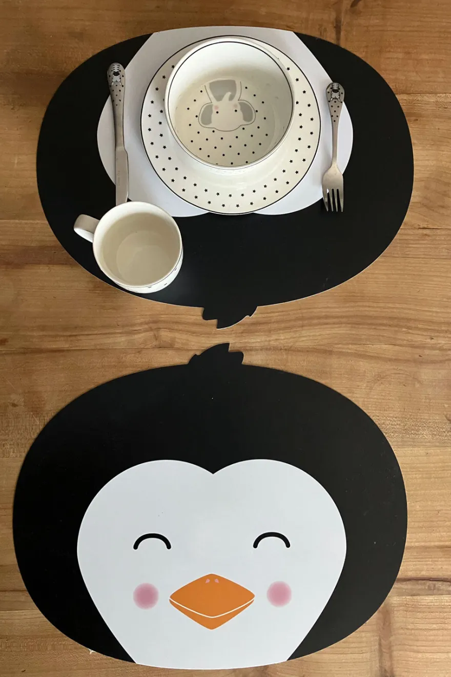Original mantel individual para complementar las mesas de los más pequeños de la casa. Disponible en tres modelos diferentes: oso, pingüino y mapache.