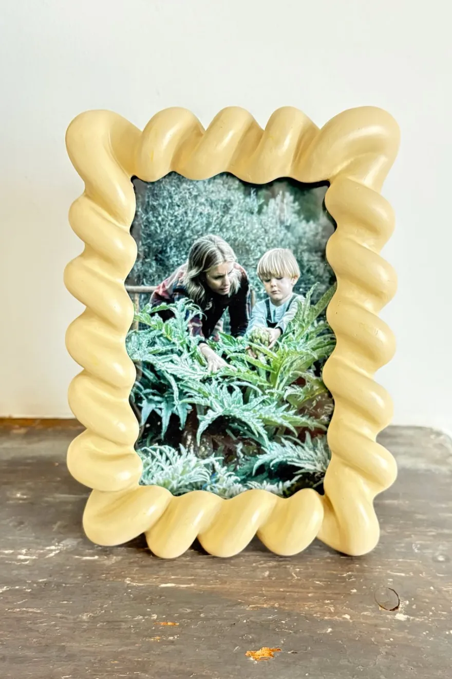 Este original marco de fotos de poliresina destaca por su diseño en espiral beige que evoca una sensación de movimiento y frescura. Ideal para quienes buscan enmarcar sus recuerdos más especiales de una forma distinta y llena de estilo.