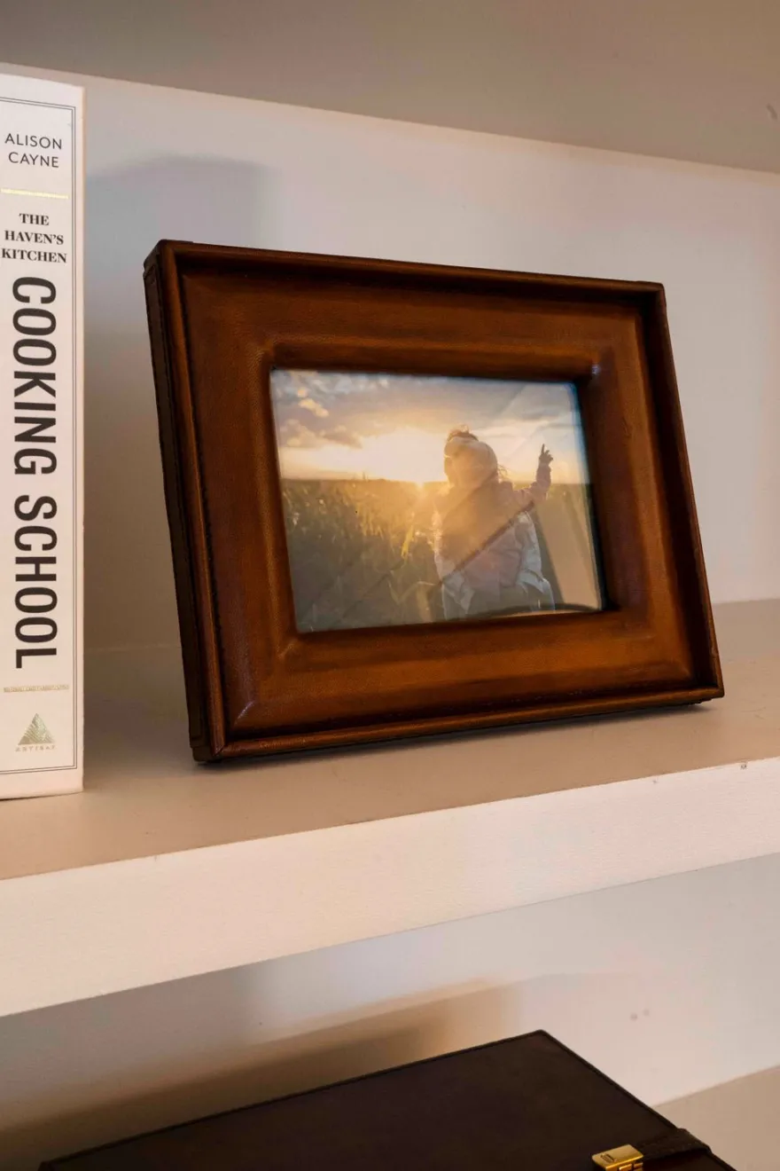 Marco de fotos de cuero, ideal para decorar y ambientar cualquier rincón de tu casa.