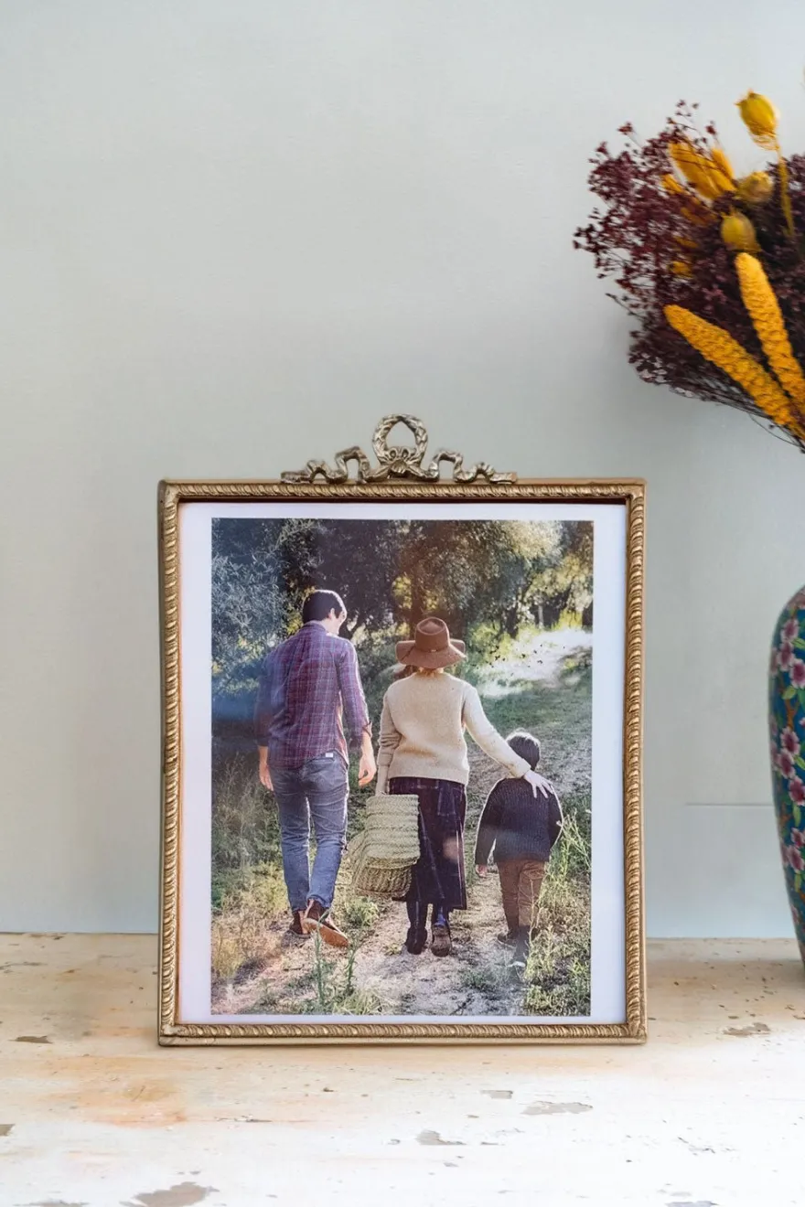 Este marco de fotos dorado, destaca por sus delicados detalles tallados que evocan la artesanía clásica y el gusto por lo exquisito. Su diseño sofisticado lo convierte en el complemento ideal para cualquier espacio, desde una sala de estar hasta una cómoda en el dormitorio.