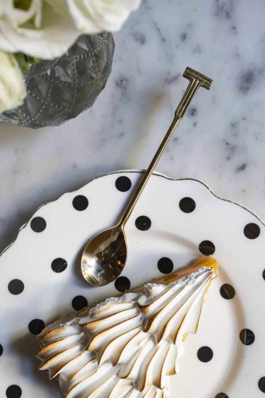 Esta elegante cucharita de bronce es el complemento perfecto para cualquier mesa. Cuenta con la inicial T grabada en su extremo, lo que la convierte en un regalo personalizado y exclusivo.