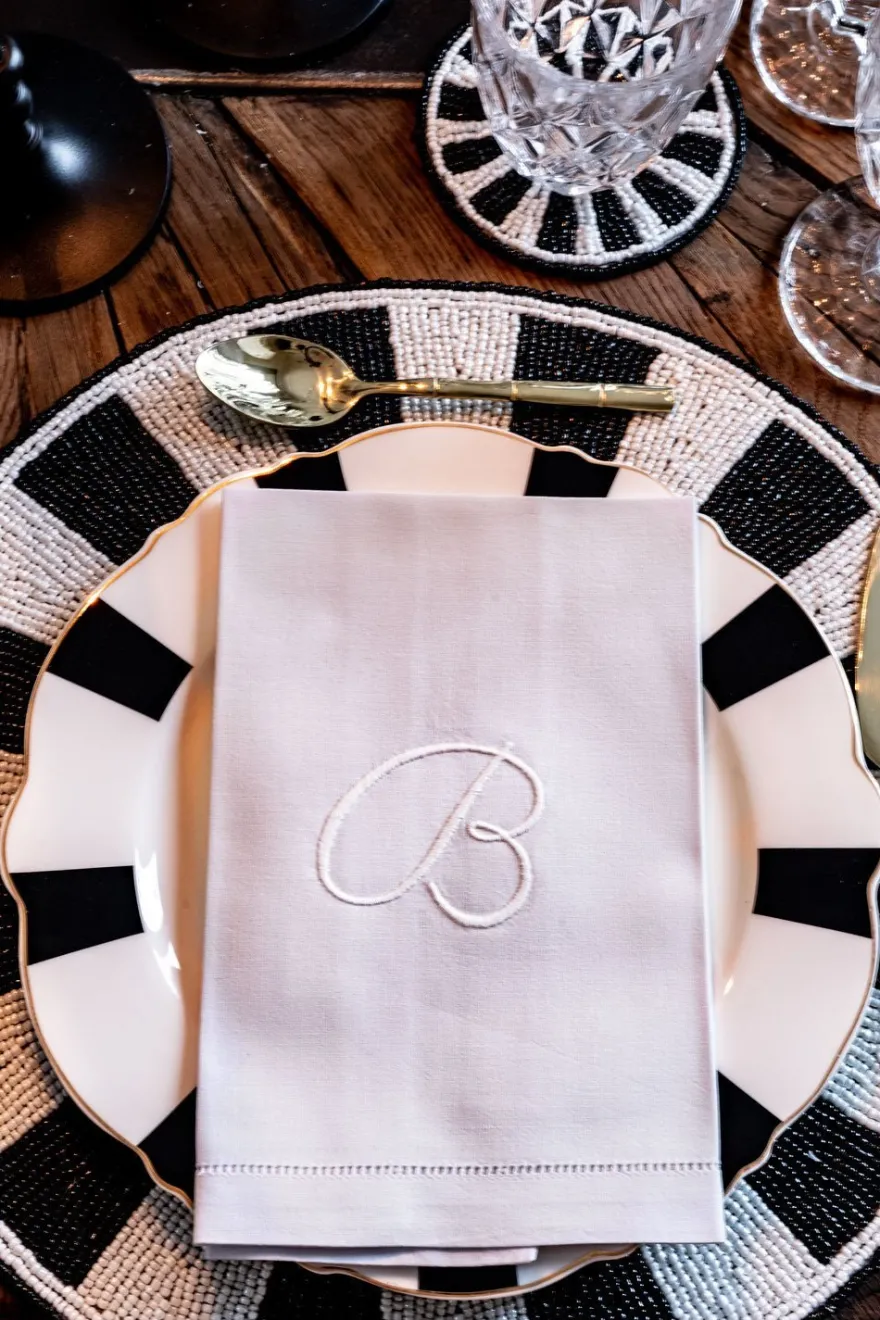 En cada servilleta, se ha bordado cuidadosamente una inicial del abecedario, personalizando cada pieza y haciéndola ideal tanto para uso diario como para ocasiones especiales.
