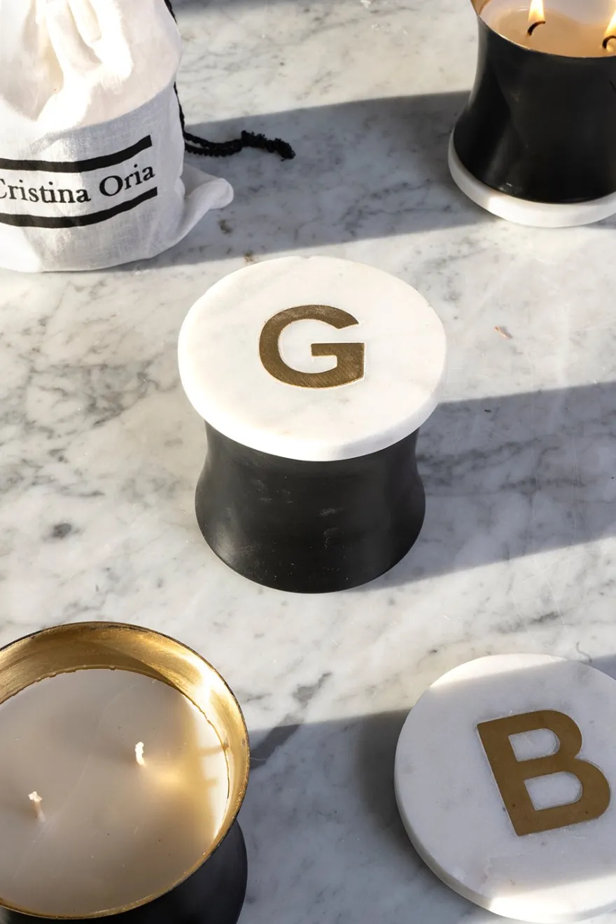 Escoge la inicial de tu vela aromática con diseño propio Cristina Oria, ideal para ambientar y dar un toque súper elegante a cualquier espacio.