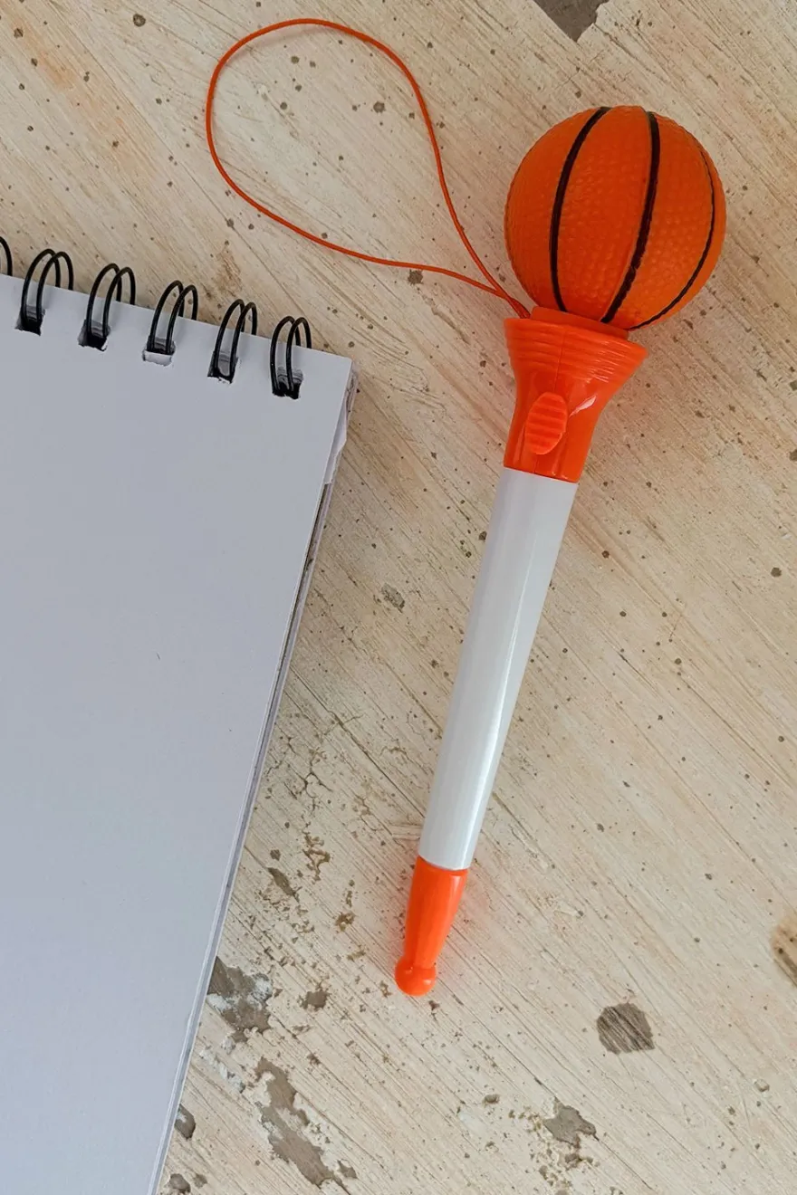 Divertidos bolígrafos con aplique para disparar y atrapar la pelota que tiene colgada.