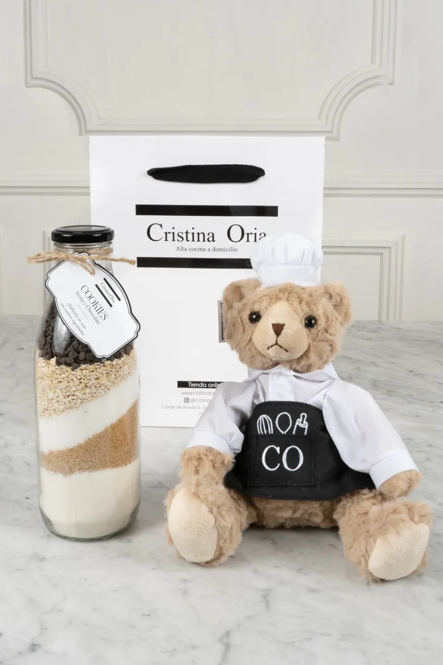 – Peluche Oso Chef CO: desde que nació Minichef que ya tiene nueve años, siempre hemos querido tener un oso chef CO. Desde entonces, hemos trabajado en su diseño y hemos querido guardar hasta el último detalle, hasta que por fin hemos dado con este peluche tan ideal