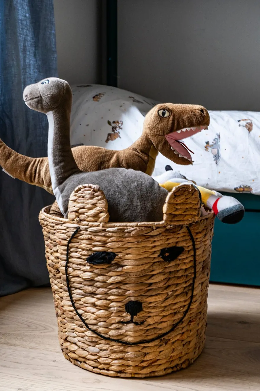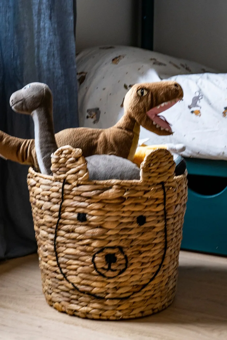 Cesta de junco con diseño de cara de oso, perro, gato o tigre, perfecta para guardar los juguetes, zapatos, pañales…