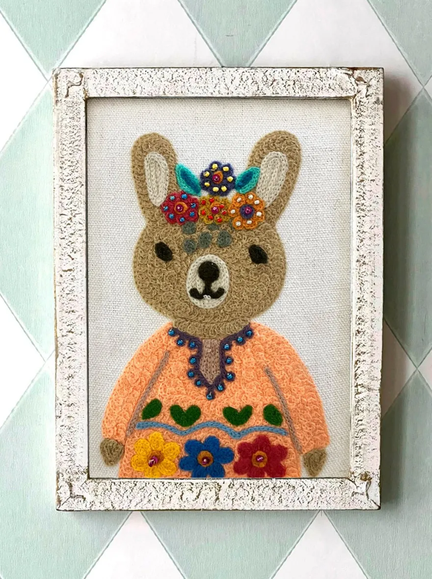 Cuadro infantil bordado con diseño de coneja, ideal para decorar la habitación de los más pequeños de la casa.