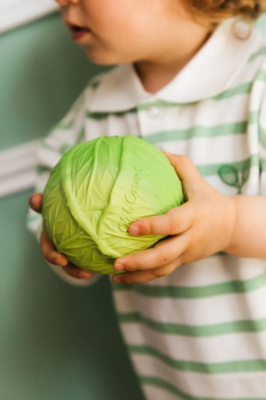 Mordedor con forma de col que estimulará los sentidos de bebés mientras alivia sus encías durante la dentición. Además, su textura realista les ayudará a desarrollar el sentido al tacto.
