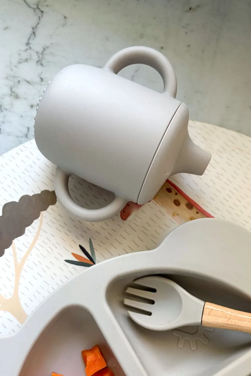 Este vaso de aprendizaje de silicona está diseñado especialmente para acompañar a los más pequeños en la transición del biberón al vaso. Su tamaño y forma facilitan el agarre por manos pequeñas, fomentando la autonomía y la confianza al beber.