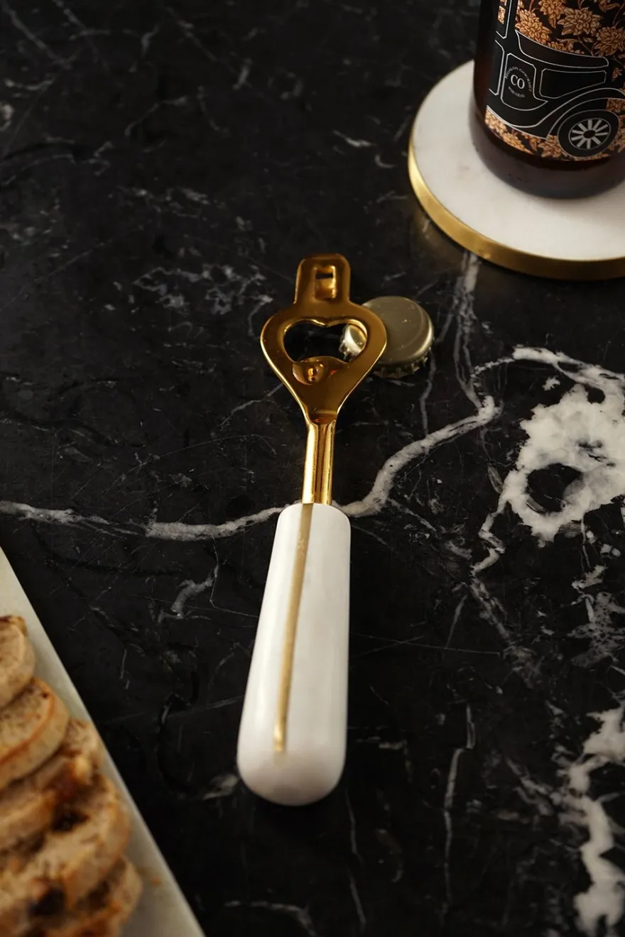 Abrebotellas de latón con mango de mármol.